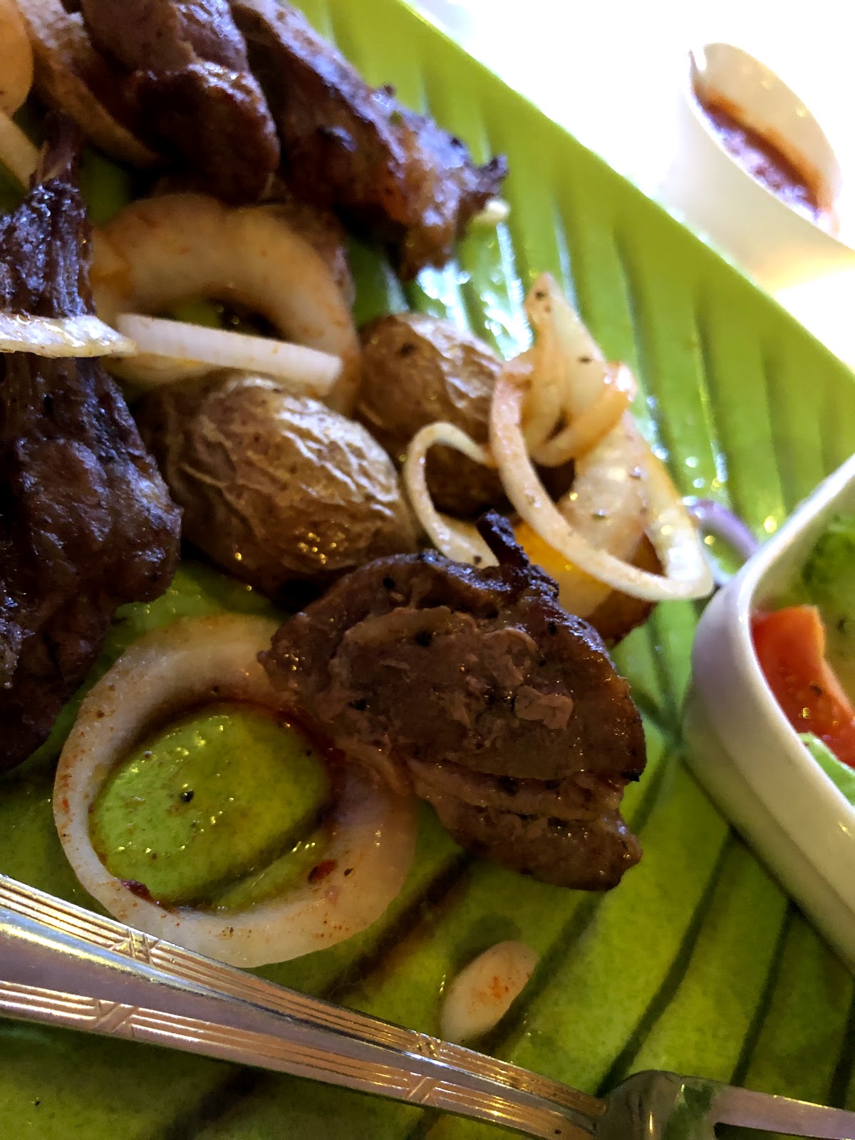 Wir hatten vor dem Hauptgang eine Fleischplatte bestellt. Da kamen 4 Sorten aufgeschnittenes, dünnes Fleisch ( Leber?!). 2 Sorten konnten wir essen. Den Rest leider nicht, da fehlte irgendwie auch die Erklärung was was ist.