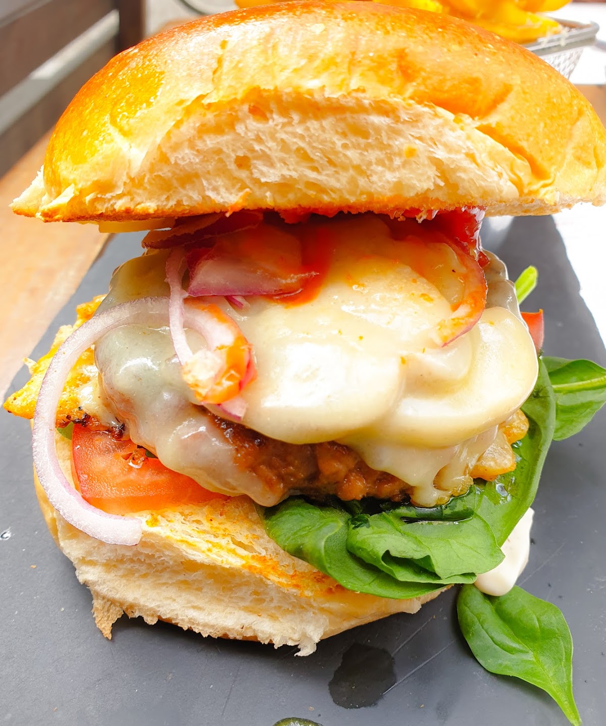 Awesome burger place. It has yummy beef burgers but the surprise was the vegetable burgers. Its has a great texture and trust me you won't miss meat. You can also customize your burger with other items such as avocado, bacon, caramelized onions, more cheese, Jalapenos etc. Would definitely try it again.
