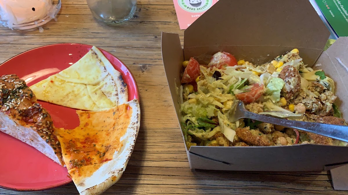 Mein neuer lieblings Imbiss! Ich freue mich sehr über die neue Eröffnung und genieße euer Essen. Gustav Grün bietet tolle Vegetarische/Vegane Speisen an. Eure wraps sind extrem lecker und ihr habt eine gute Auswahl an Hummus und Soßen. Für neue Kunden: bestelle unbedingt ein Wrap mit Avocadohummus, Mais, Jogurtminze Soße und wedges. Die wraps sind sehr groß und machen satt und kosten nur 5,80€. Die Falafel waren auch sehr krusprig und passten gut zum Dattelu0026Feigen Hummus.