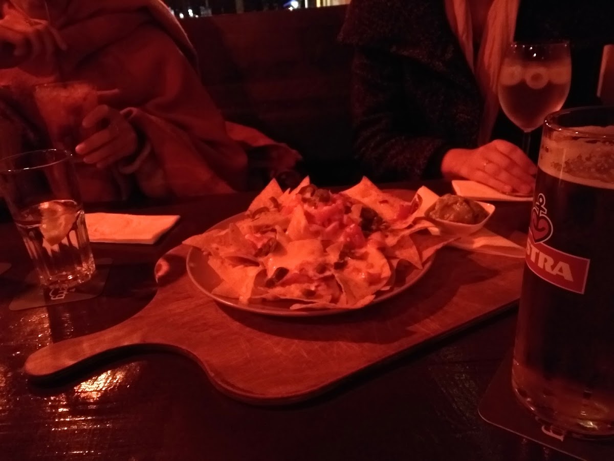 Wide range of drink options available. Different types of food like burgers, flammkuchen, salads, nachos, etc. are available. Prices are also reasonable.