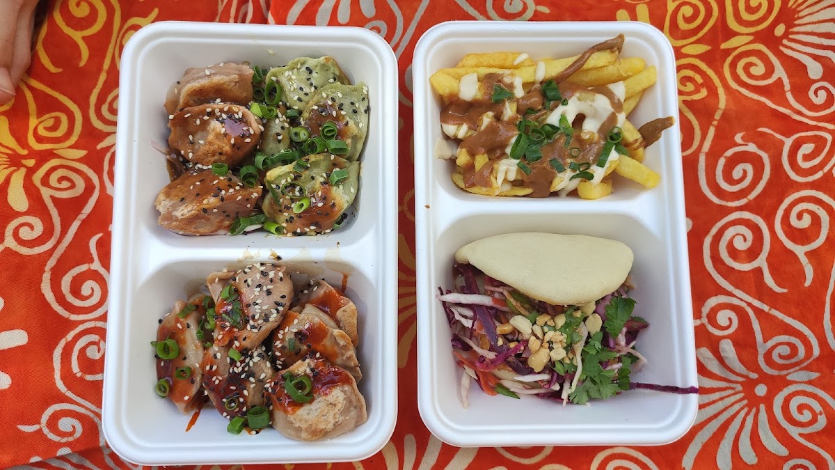 This place is a gem in Berlin! We ordered the meat box and we absolutely loved the pork belly bao! Dumplings tasted amazing as well! Very fresh! Definitely a place to go if you want to try some street food. Luckily we didn’t need to wait in line. Otherwise there’s a bar right next to it where you can order beers and seat????