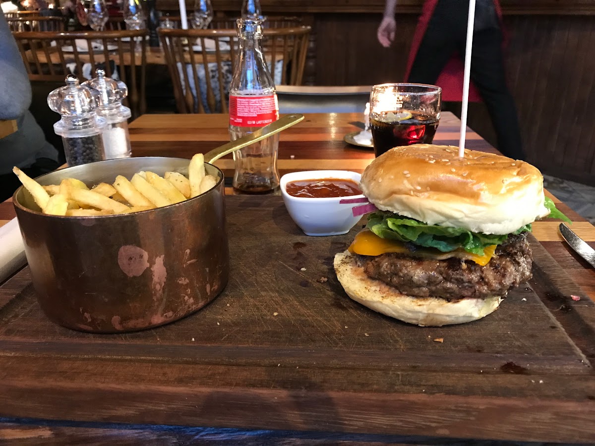 Friendly service, fast orders, nice burgers and curly fries. The cheeseburger has the right seasoning for the meat. The sauce is not overwhelming so it is not dominating the whole burger and you can still taste the original meat, pickles and tomatoes. The curly fries are great to complement the burger. One of my favorite burgers in Berlin.