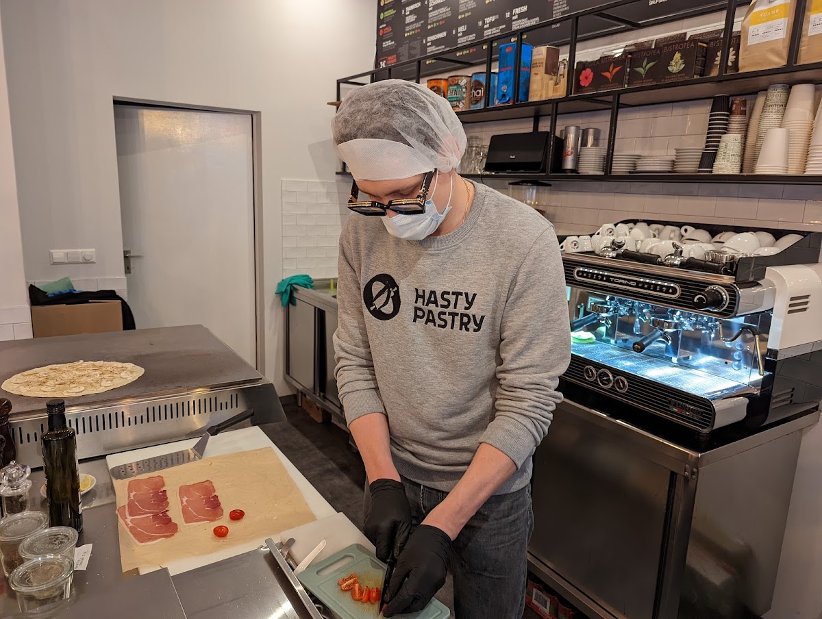 The owner is running this place with care. Great coffee, but you should definitely come here for the food! I read in the comments to try the spinach version and yes, it is amazing. We also tried the one with ham and yes that one is great too, but if you like cream cheese, go for the spinach.