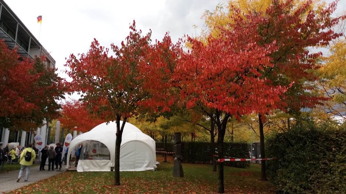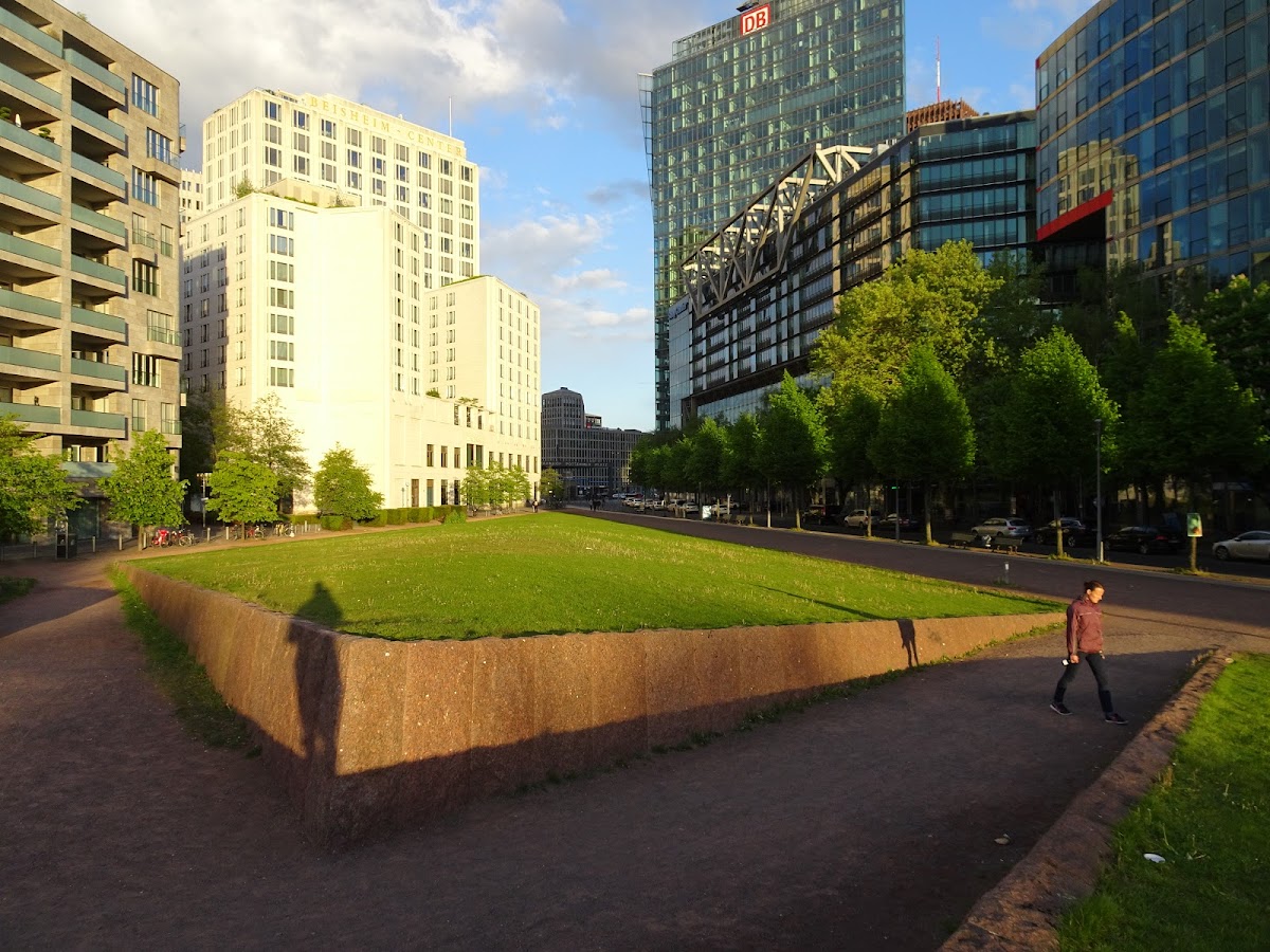 In the morning the sun reflects off the surrounding office buildings quite strongly, lighting up the grass and, in the late spring, flowers growing in the park. Get there at the right time and you can get yourself a really nice picture!