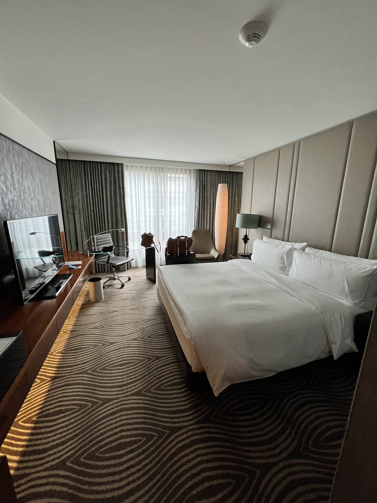 Where to begin?! We pretty often stay with Hilton all over the world and know how great it could be. Unfortunately, Hilton Berlin is not one of them. We had the biggest King Room, which was fine, bathroom tile was falling apart in some places. The first room they gave us had smoke smell all over the room. In the corridors of the hotel they have very strong “not bad” but smell. Breakfast was okay, we just had better. Stuff at the restaurant was not very friendly and looked like waitresses are pretty unhappy. Except one black. waitress with short curly hair (I’m sorry I didn’t get her name). She was fantastic. Super caring and always paid attention to every details. Also concierge stuff was phenomenal. The location is amazing! Great spot and walking distance everything. My husband and I did expect more since it is Berlin, but we got disappointed and not coming back. I hope you do improve your customer service and quality of the room, even small touch ups.