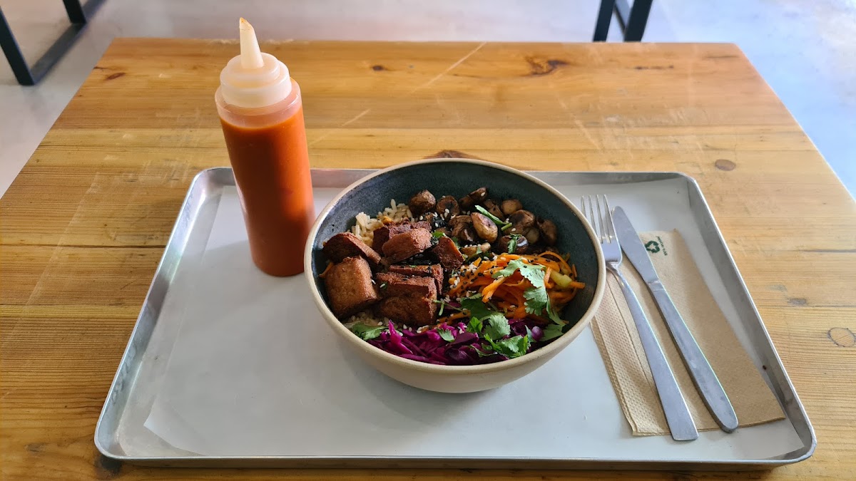 I had the super tasty Fiesta bowl, with guacamole, corn, black beans, nachos. The sourdough bread that came with it was not the best. Outside seating was simple, clean and lovely.
