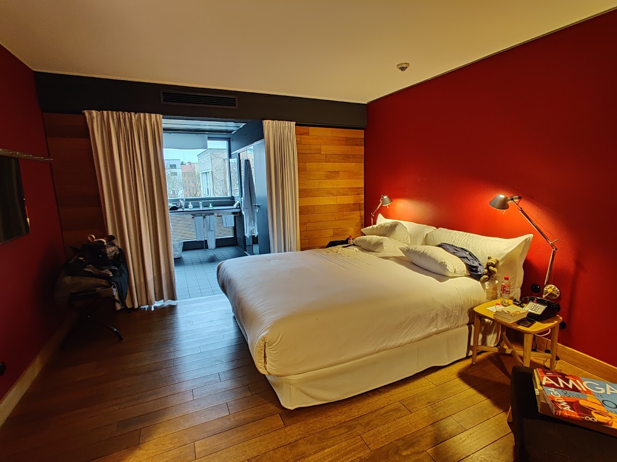 Fastastic hotel. Highly recommended. Very friendly and helpful staff. Complimentary snacks and drinks on rooftop bar were brilliant after a busy day. Breakfast excellent. Sauna was great too. Bed was massive and extremely comfortable. We were able to check in early and leave bags because of late flight. We have no negative comments whatsoever! Definitely use again and recommend to anyone visiting Berlin.