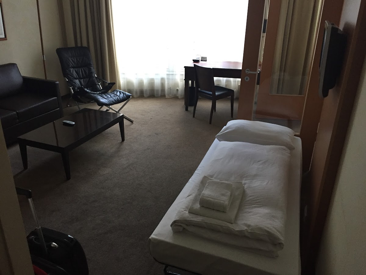 The whole hotel could use a renovation. Some things look a bit old. Bathroom was ok but I don't like showering in the bathtub. Some things were broken, like the safe locker (very inconvenient) and the freezer in the kitchen. Then also the room felt very hot. We solved this mostly by turning down the radiators (no AC) and open the windows when we were gone during the day. It was still warm though. I expected more modernization from an NH Hotel.