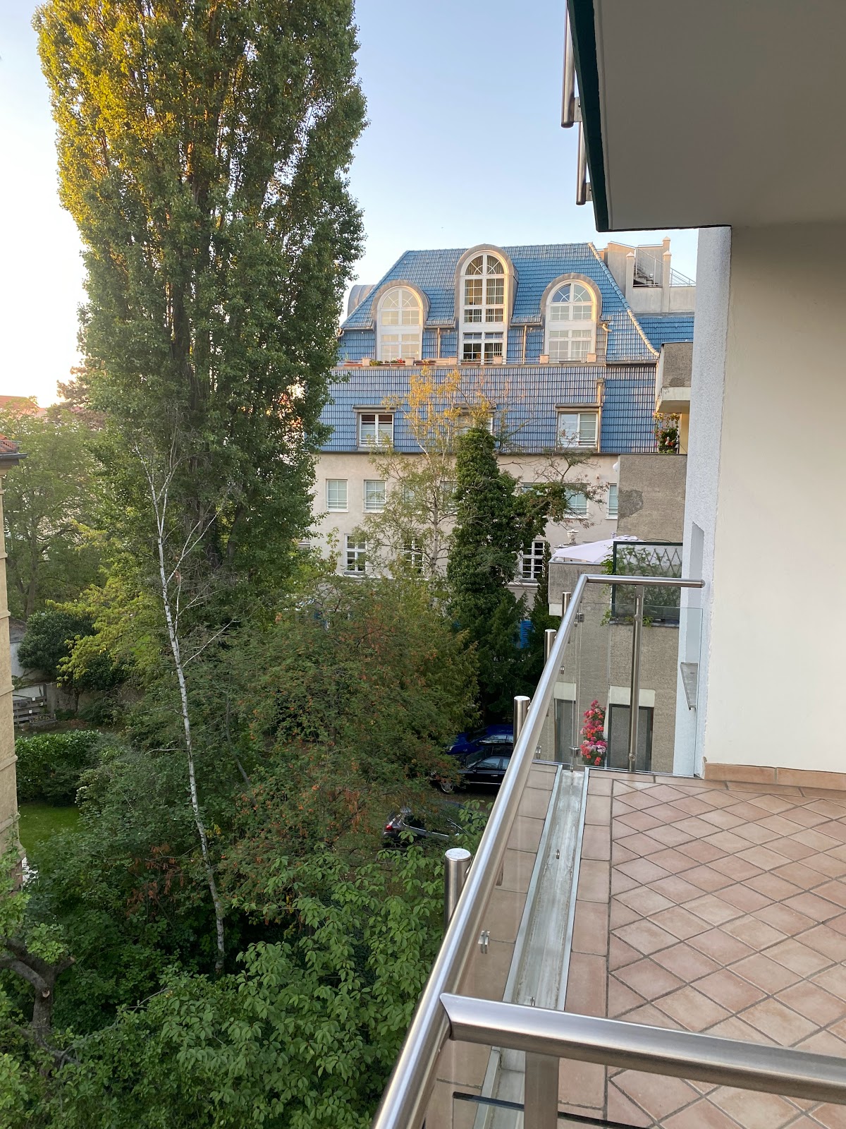 We stayed here for 7 nights in the Asian suite. There is construction with scaffolding covering the entire front of building. So we had construction men right outside our bathroom windows (when we're showering) and covering the balcony so there is no view or balcony usage. Construction work from 8:30am so it wasn't relaxing and lack of privacy if you're still in the room. The A/C didn't work after the after the 4th night and no effort to update us on repair or move us to another room. The room is very stuffy so we had to air it out. No real lobby with space toeet people - just a reception. The room was spacious and cleaned daily. A child bed and bedding was provided. It's 5 min walk to U bahn (40 min to Prenzlauer B). A couple of restaurant s nearby. Overall, the hotel is not bad but we wish we knew about the construction work. We would book another hotel.