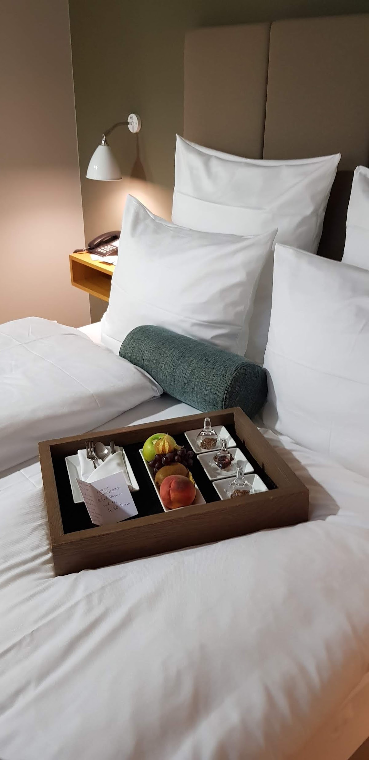 We had a late checkout (around 7pm) and even though the room was cleaned in the morning. The breakfast table was very rich and very good.