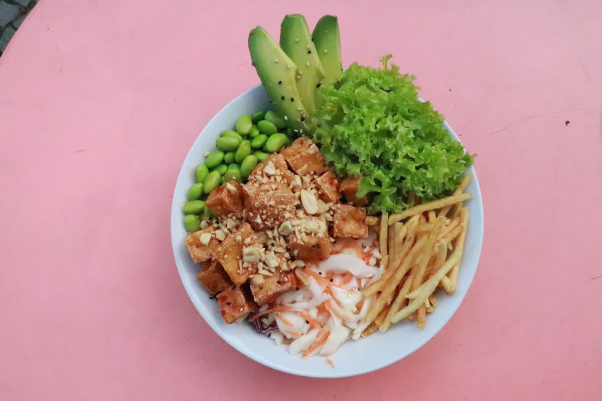 Absolutely disgusting. False advertisement. Not healthy at all. 5 vegetables, some old salad, old heated up fried tofu soaked in an oily water down sauce. Tasteless, thrown out after 2 bites. Just seeing it made me feel unwell. How they have 4.5 stars... is just beyond. The proof vegan food can be as bad for your health than eating a burger.