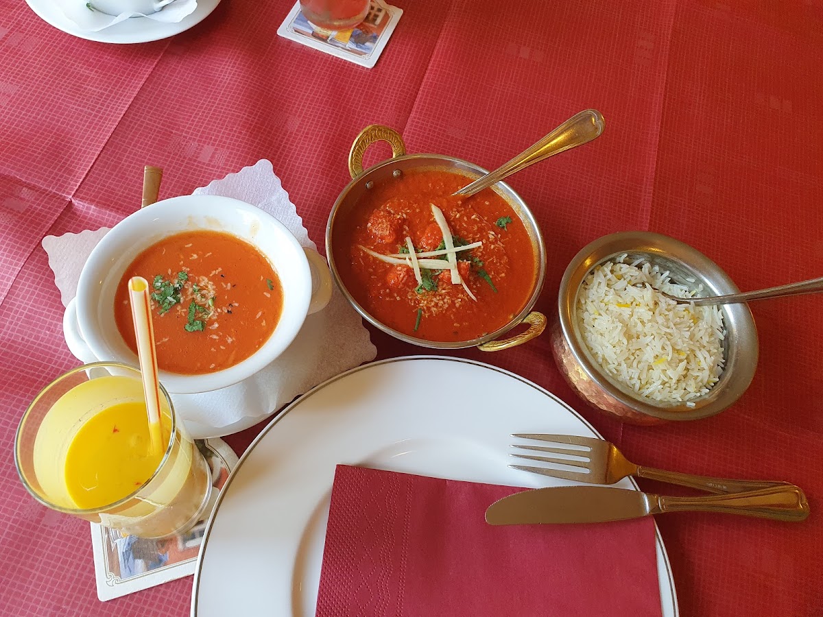 My mom and I, we ordered two dishes (malai kofta and butter chicken + 2 bhatura’s + raita)