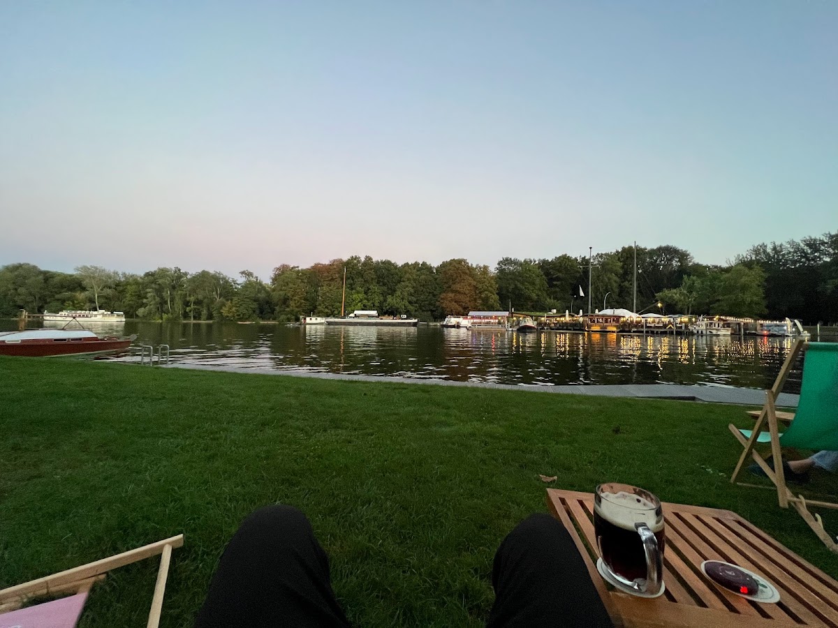 This beer garden is the hidden gem in Berlin. It has a great for you to the river. The beer and snack were also really good. We all had such a good time there.