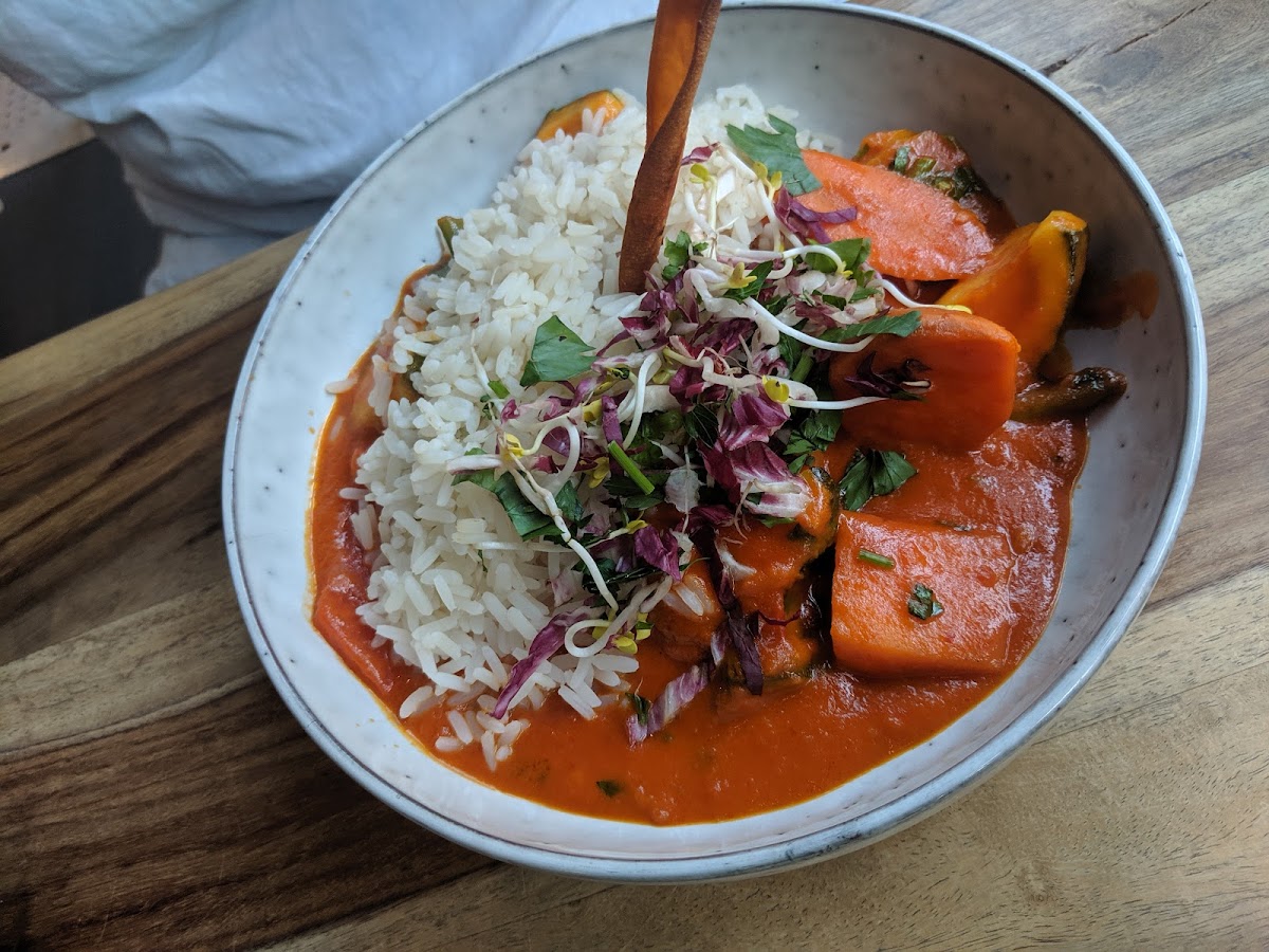 The place looks nice but that is pretty much all good I can say about this place. Burger wasn't tasty at all and looked a bit sad alone one the plate and I guess the patty wasn't even freshly made. The Flammkuchen was just some piece from the freezer quickly heated in the oven. There were some thick carots in the curry dish and they were not proberly cooked and still raw in the middle. The salmon dish was alright. Would not come here again as it wasn't the cheapest place. I expected a lot more.