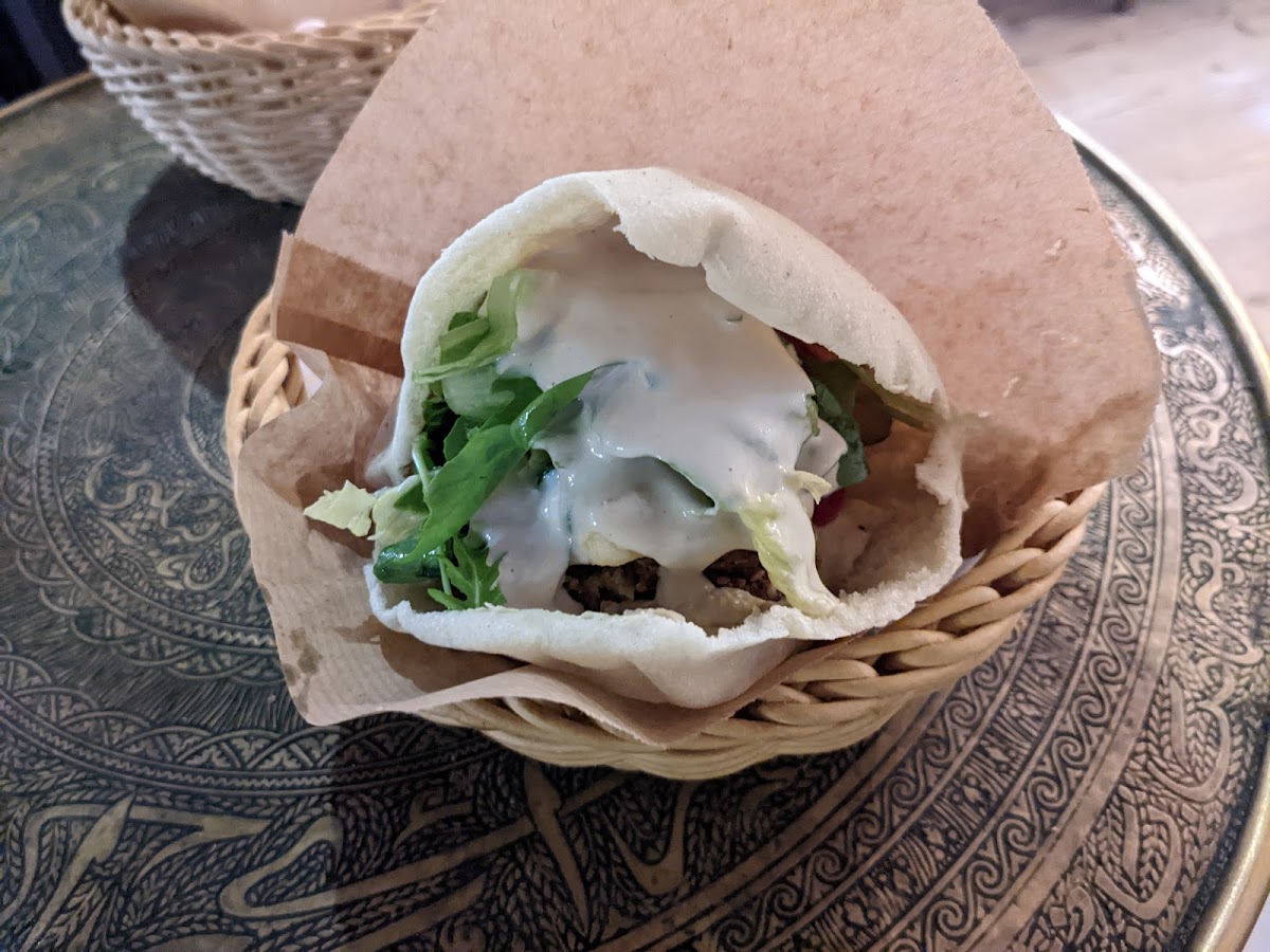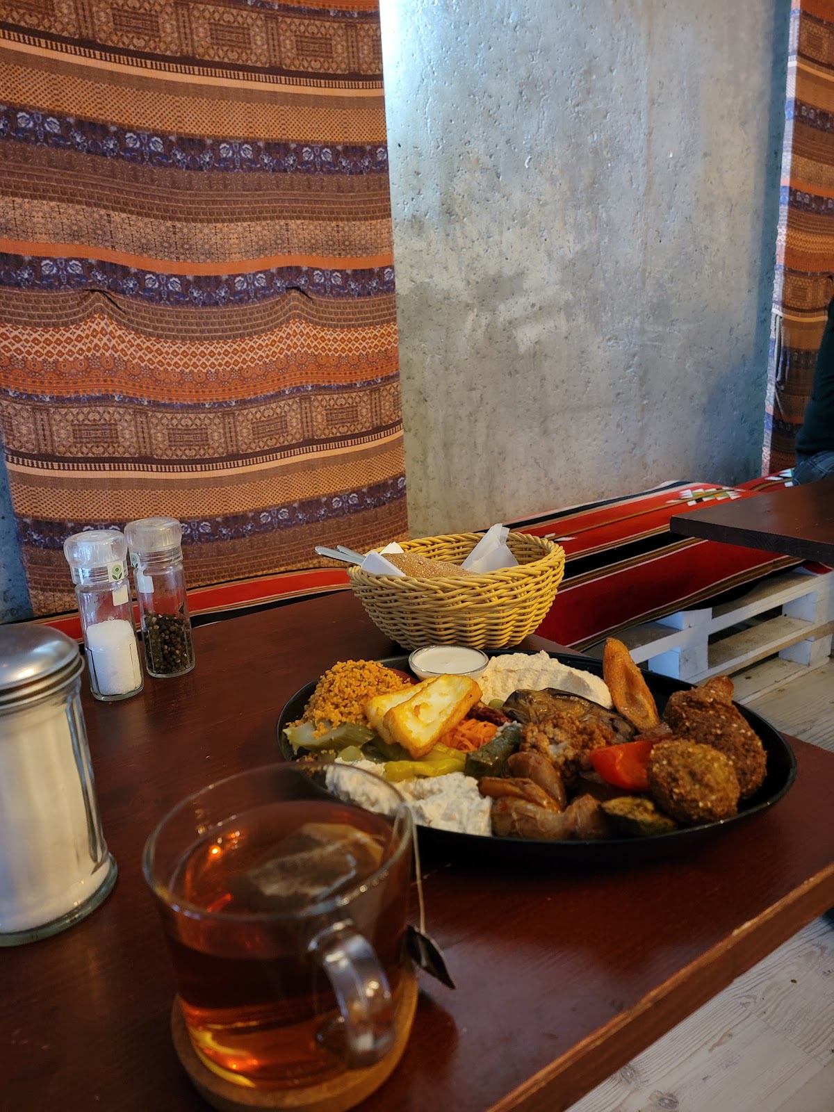 I was in Berlin for 3 days and this place happened to be next to my hotel. The staff were very nice and helpful in guiding me through the menu since I don't speak German. I ordered this plate which I forgot its name but I asked them for "everything" in it. As someone that had falafel in Iraq, Syria, Palestine and Egypt, I can tell you this is the real deal. They make one of the best Falafels I've ever had. Do not miss out when in Berlin.