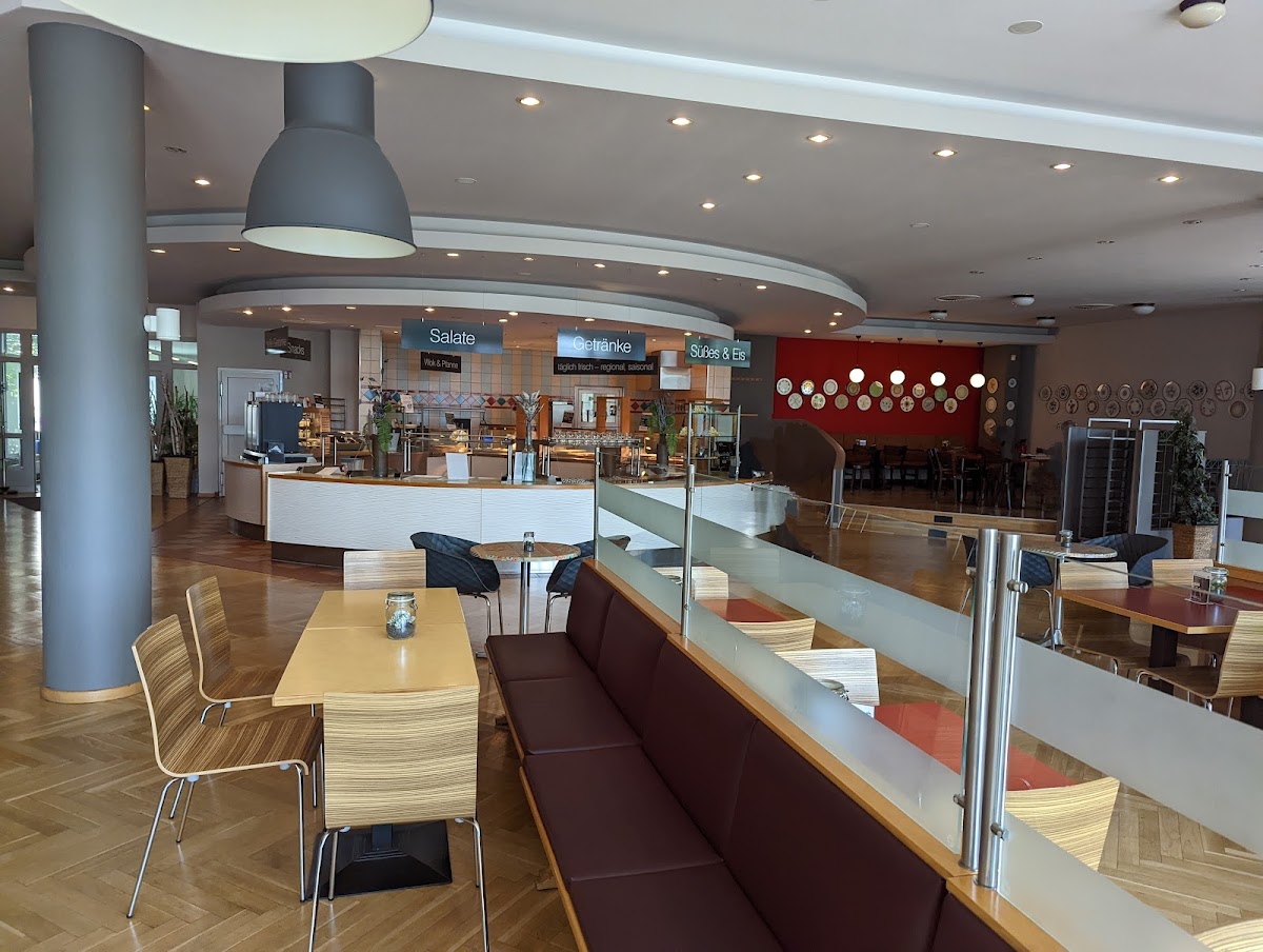 (Translated by Google) A good canteen in the office building district. A daily soup, several main courses of your choice and always a vegetarian dish. Desserts include pudding, yoghurt and various creams. Croissants or bread rolls are also available.