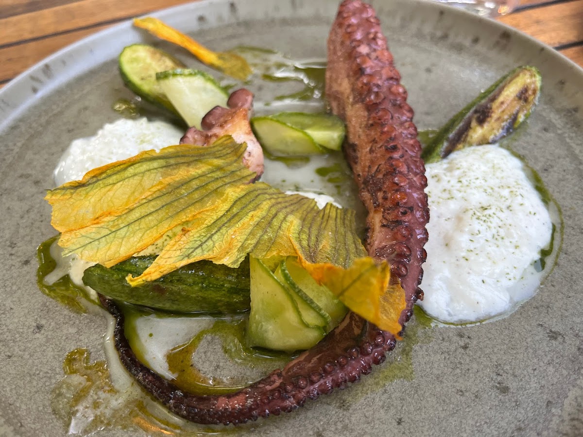 The place is beautiful to sit outside- especially under the trees. Our table was under an umbrella, which was a bit dark, they could have closed the umbrellas. There was no more sun hitting the outside area. It is also quite loud, so be aware of that.