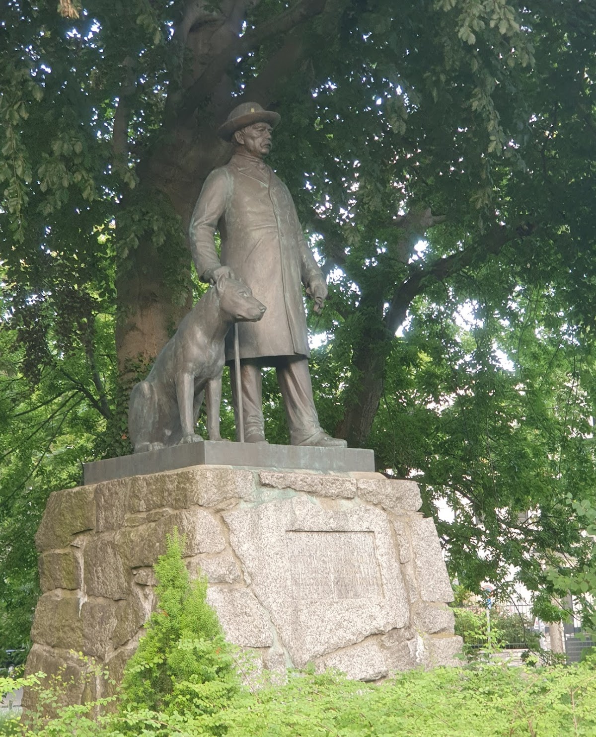 The 1.85 m high bronze statue shows Konrad Adenauer with a billowing coat and hat in his hand.