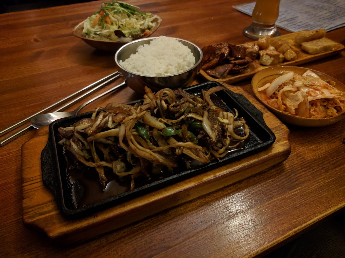 Mediocre food for average price (comparing to few other Korean restaurants in Berlin and outside). Really long waiting time (we spent there about 1.5 hours before getting even starters). Bad service, waitress, who is not able to communicate or explain something.