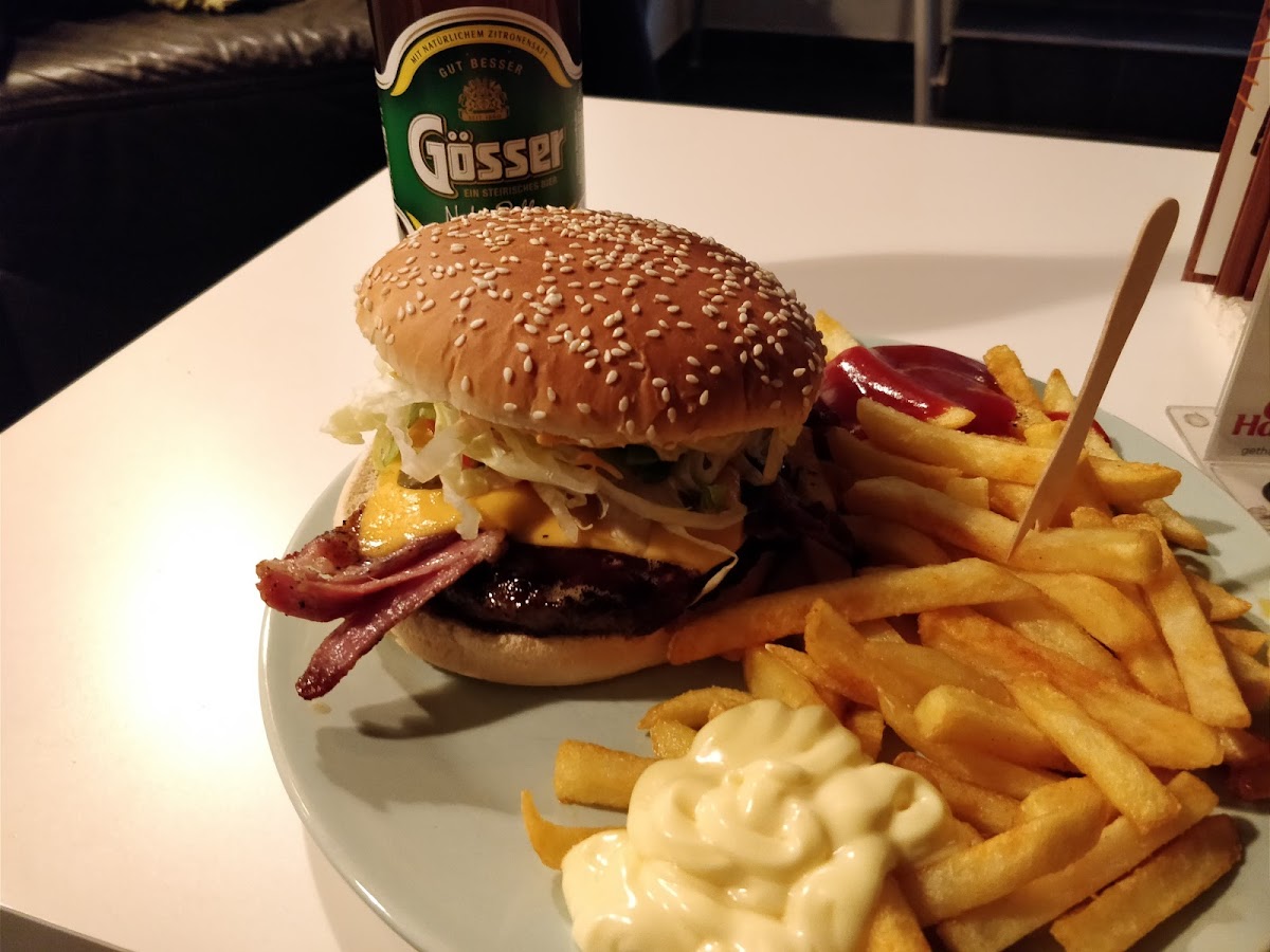 The burger was really good, and the staff was friendly. The curry sauce with the sweet potato fries was awesome as well. The atmosphere is really laid back, and the prices are awesome. You can get a quality burger and fries for around 8€. I will definitely be returning.