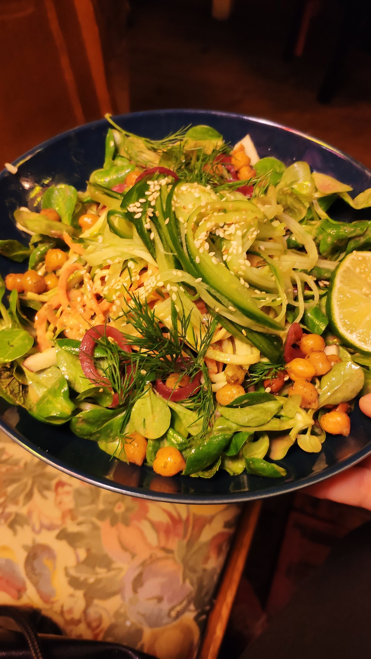 They serve what are (from my understanding) classical foods - but veganized and with a creative twist to them! To give an example, the Blini ???? with either vegan salmon or vegan caviar are super thin and black in color! ???? Also, the serving of Pelmeni ???? was garnished with various seeds, dill and seaweed. An interesting taste experience over all!