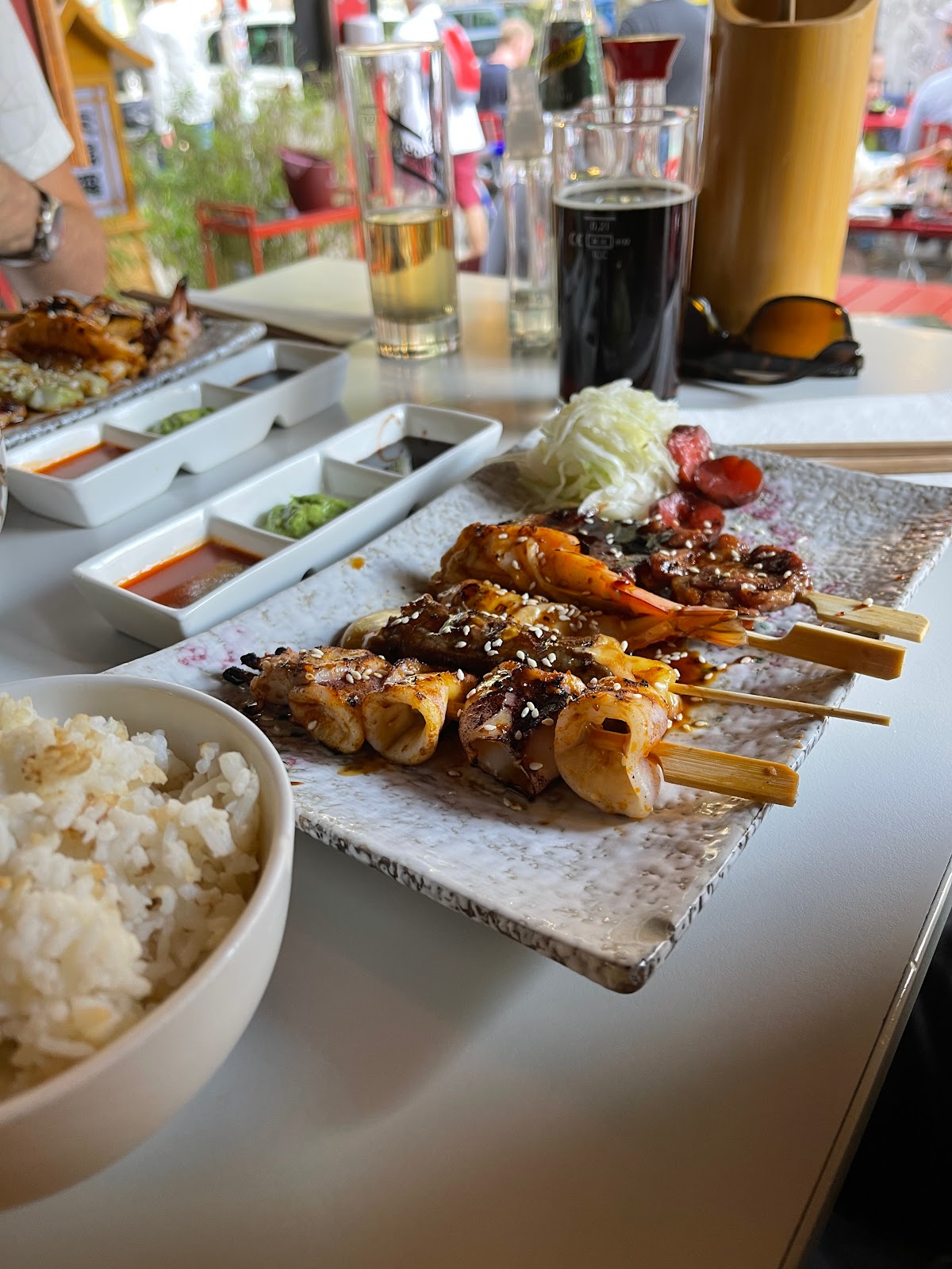 The skewers are incredibly good… Specially the chicken and pineapple one, the pork and cherry tomatoes, and the prawn ones. Also, the guys are super nice. A great experience overall. We will go back for sure!