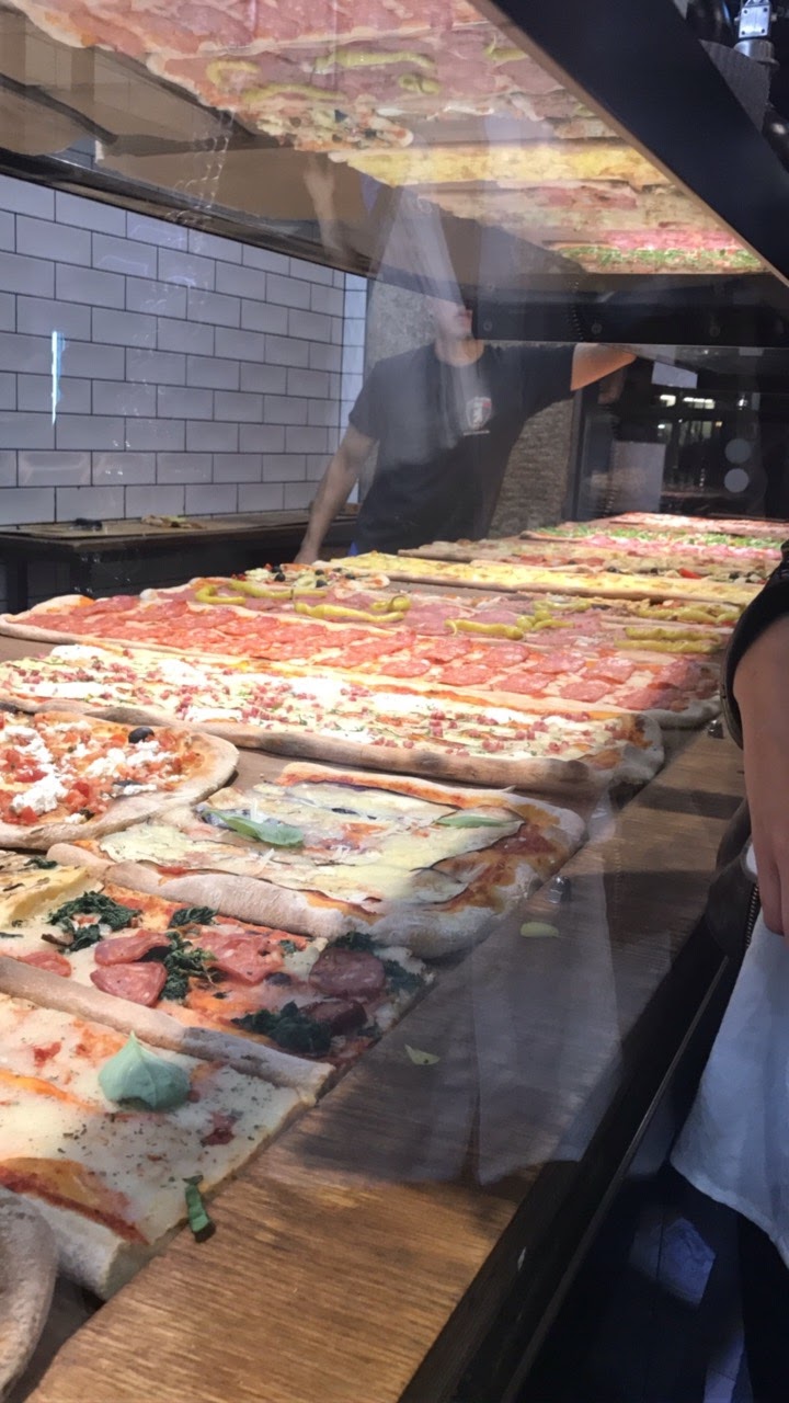 Love this place! Cheap pizza with fresh ingredients. For 3 euros you get a large slice that you can enjoy hot and ready! Around 10 large rectangular pizzas to choose from at any given moment with hot ones always added.