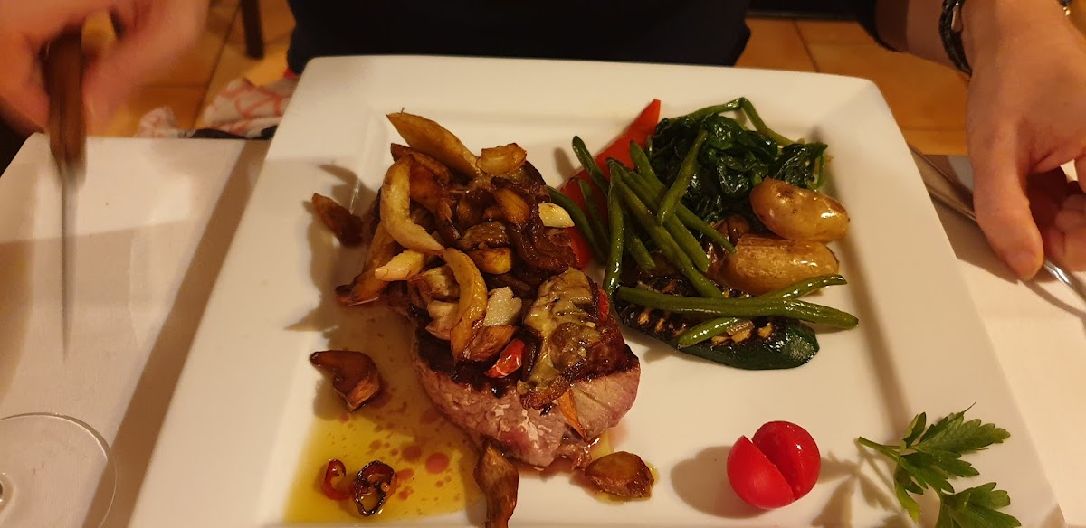 Good location of this, relatively new, Italian restaurant in the middle of Zehlendorf. Cute terrace and interior but way to warm inside. No AC or possibility of opening the windows are making it unpleasant sweaty after a while. Staff somehow friendly but not always focused. Typical Italian food in a big variety, plus daily recommandations, and good options of tasty wines. All very good for borderline high prices.