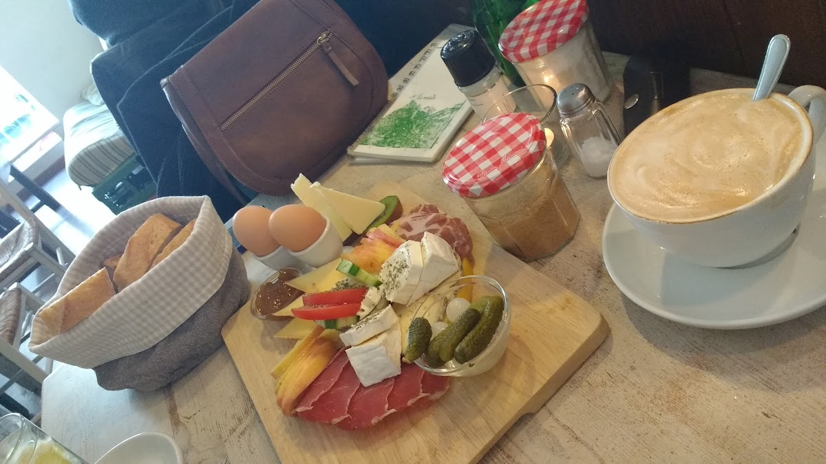 Great wee place. Server spoke great English. Good coffee and nice breakfasts with fresh fruit and good breads and croisants. Always visit if in Berlin. Serves lunch too but never tried.