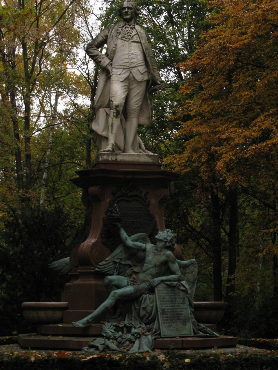 The Berlin magistrate decided in 1863 to honor three celebrities of German intellectual life - Friedrich Schiller, Johann Wolfgang von Goethe and Gotthold Ephraim Lessing - with a joint memorial in Berlin. This plan did not materialize. A Schiller memorial on Gendarmenmarkt, designed by Reinhold Begas, was built between 1868–1871, a Goethe memorial by Fritz Schaper was inaugurated in 1880 in the Großer Tiergarten.