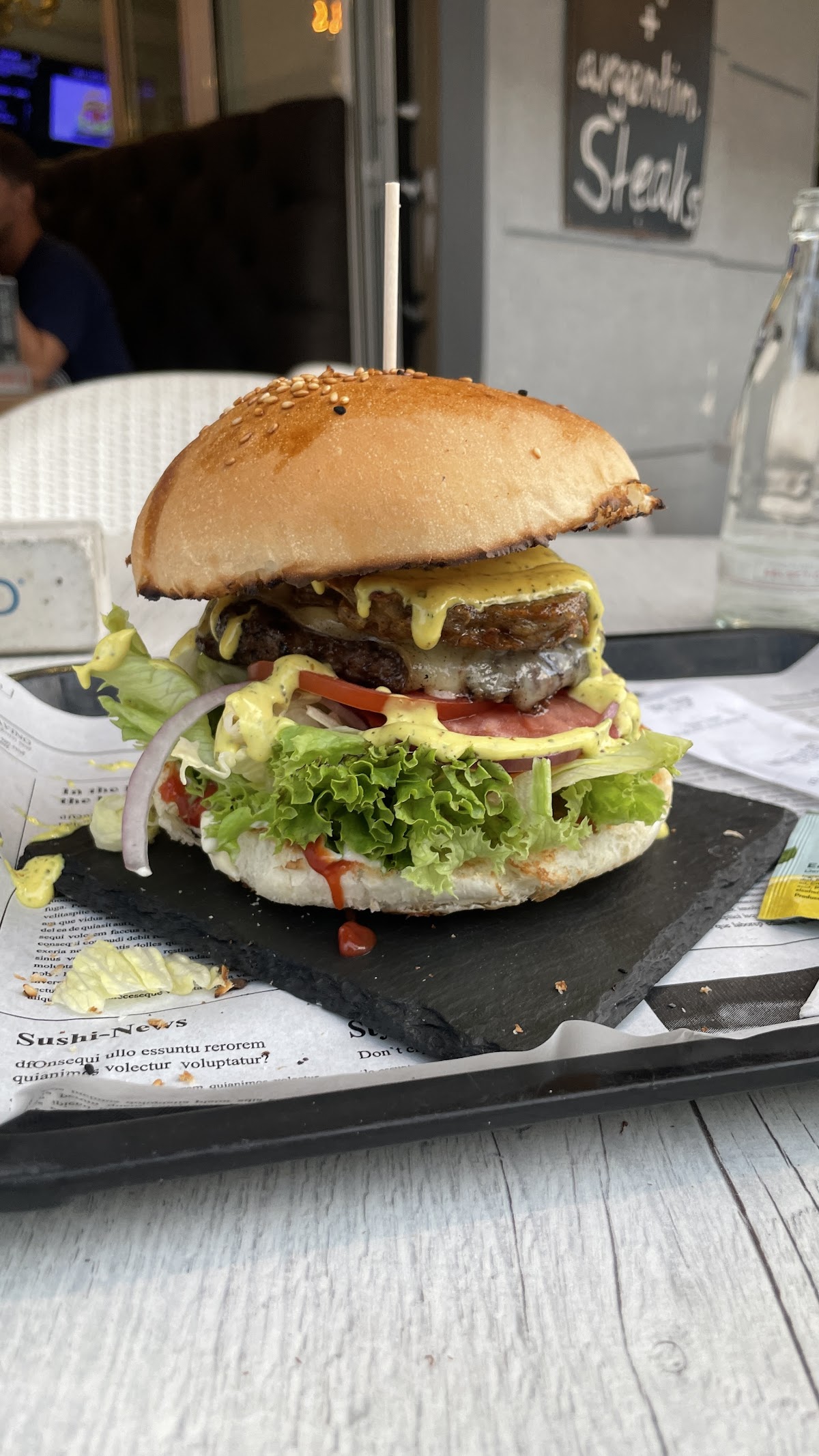 I had a lovely burger with a rosti patty, dread tomatoes and househoulf burger sauce. You have to order at the service point. It was relatively quick , done rare like i ordered it.