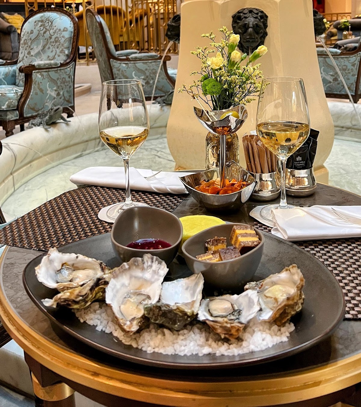Delicious! Stopped in for a quick tea but the experience was so lovely that we chat for more than an hour. What a lovely way to pass time. We ordered the hot chocolate, morgentau tea, and a cappuccino. The hotel gifted some beautiful mini-stollen. Since we stayed for longer I ordered some bread from the restaurant and the waitress brought delicious citrus butter from the restaurant to pair with the bread. Altogether a delightful experience. Germany is currently 2G which means that I had to show my vaccine cards, my ID, and wearing masks except when eating and drinking.