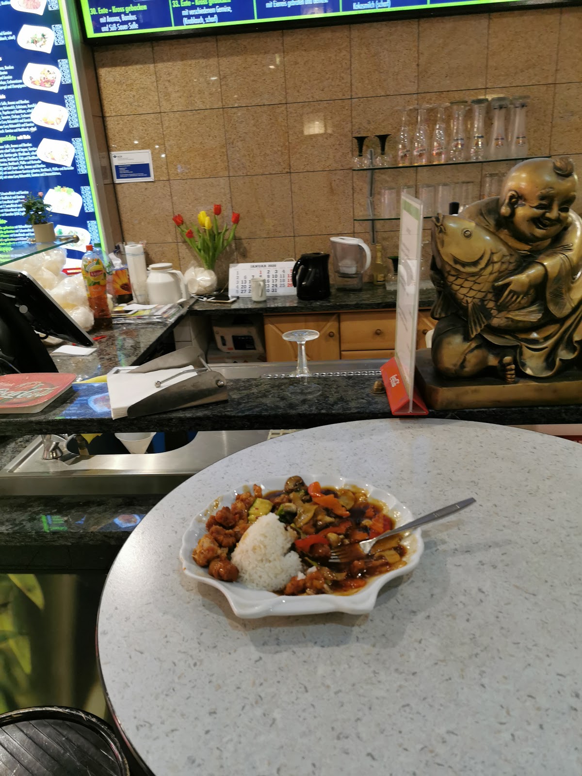 Lecker und schnell zu bereitet. Hatte die 35. Rotes curry mit Reis und knusprige Ente. Die Getränke sind bezahlbar. Und der Service auch nett. Zu empfehlen für ein Essen in der Mittagspause oder auf dem Heimweg.