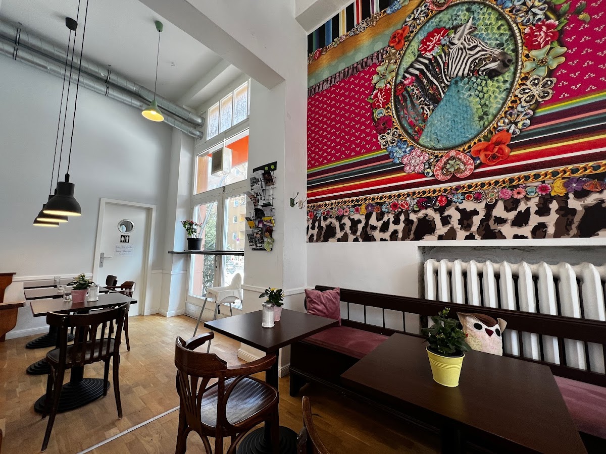 Very nice little cafe with the best crumble cake I've had in a long long while. The place is pretty kidsfriendly and nice to relax after the hard work on the kids playground. The ambient invites young people and parents.