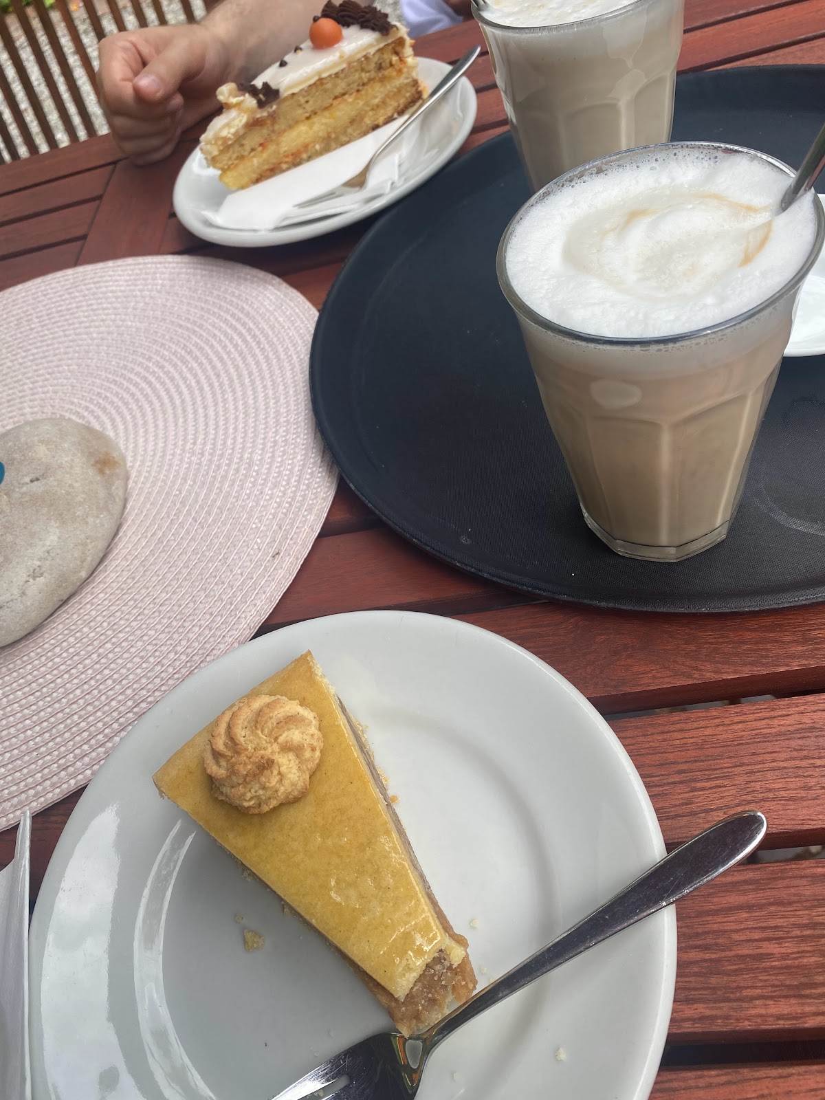A Cosy, calm with very good energies coffeeshop/ please to have vegan and vegetarian meals. The staff is very friendly and calm. Coffee is very good, if you are not a coffee drinker go for the Chai or tea and you will not be disappointed. They have Vegan self made cakes, the other delicious cakes are professionally delivered. You have a German daily news paper. The book store offers a variety of spiritual and medication books. In the summer you can sit outside. Acceptable for wheelchairs, even if the toilets are on the first floor, because there is an elevator. Dogs are welcomed. No WiFi, but you should be going there to relax!!