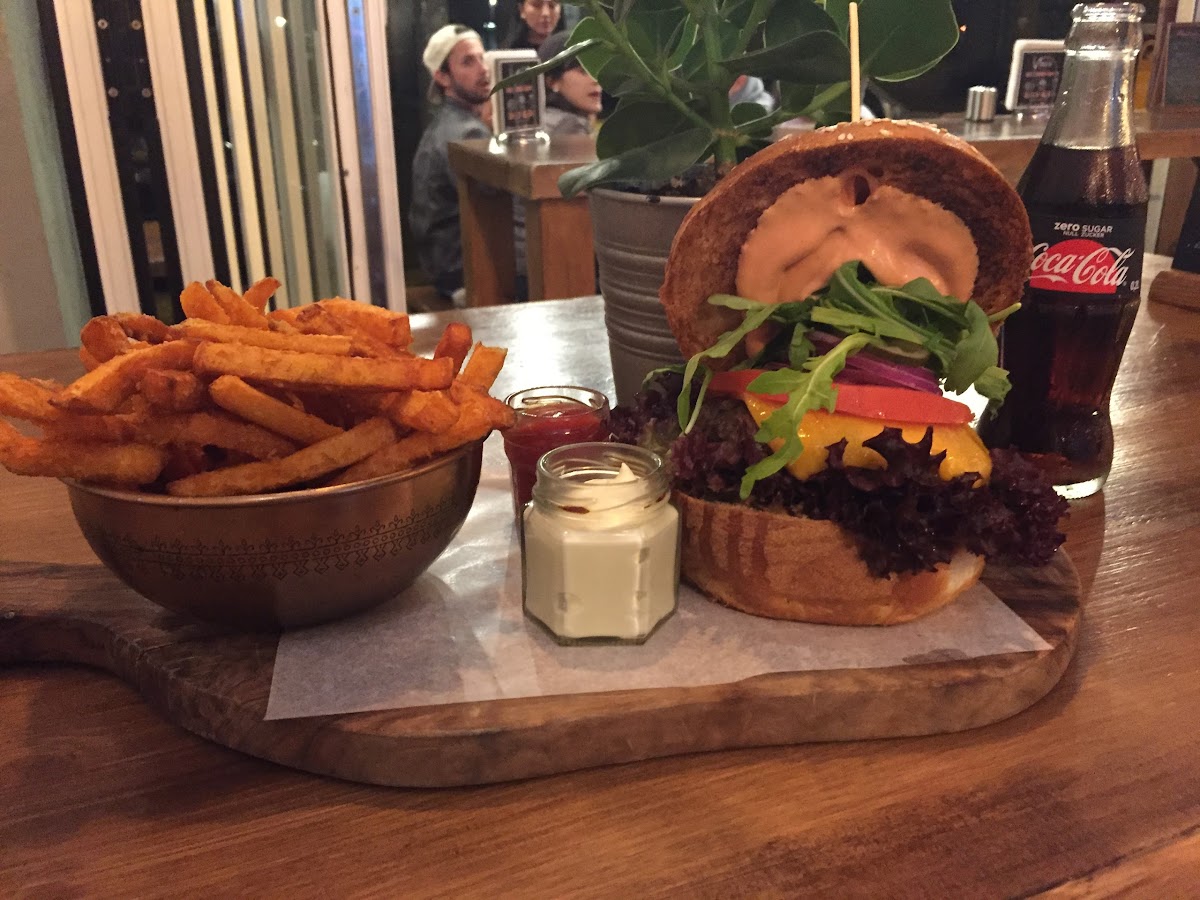 Good burger for a fair price. They have vegan options and a cheap lunch menu. Worth visiting if you are in the area.