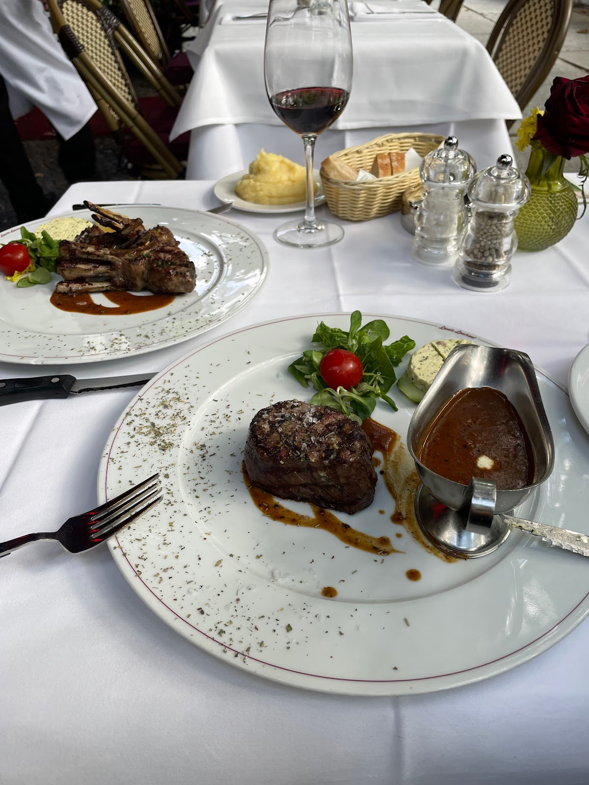 Charming French eatery in a majestic location. Try the lamb chops, and the beef steaks, of course. However, we got a bitter aftertaste when the waiter almost forced us to leave a tip, which we would do anyway. Service fee was not mentioned anywhere on the receipt or in the menu. Nevertheless, I would recommend to try it out if you’re in the area.