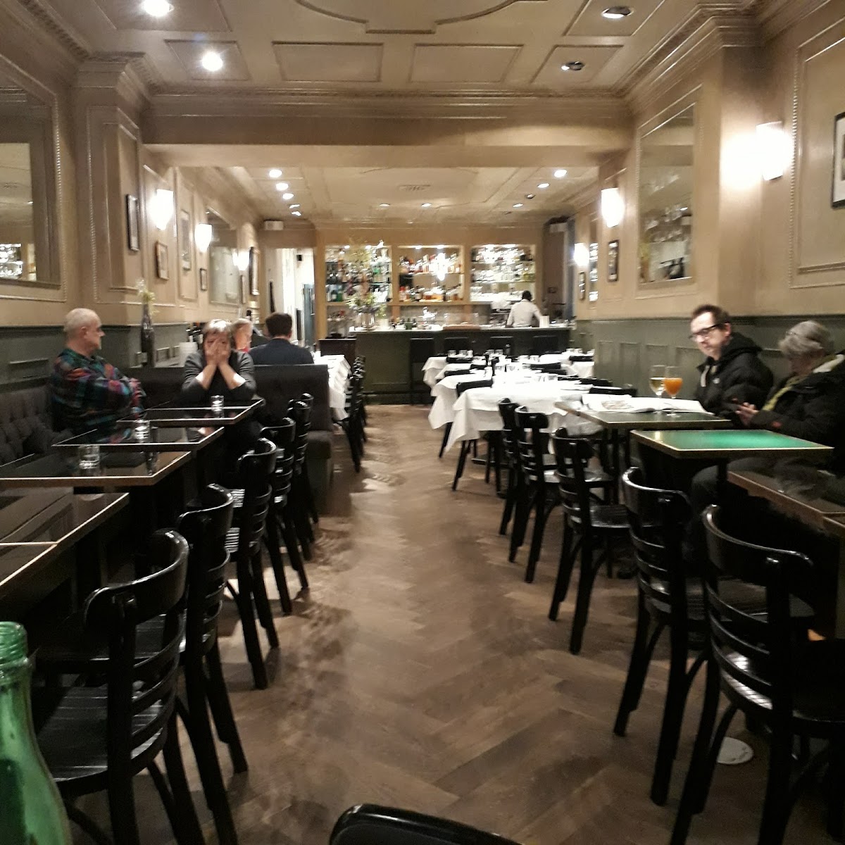 Food was not bad, but inconsistent. Goat cheese salad set the expectations quite high. Main dishes unfortunately didn't meet them. The levant chicken had a pleasant, original taste (but nothing gmore), but the schnitzel was a total disappointment. The glasses of wine were of good quality, although a bit pricy (7-9e).