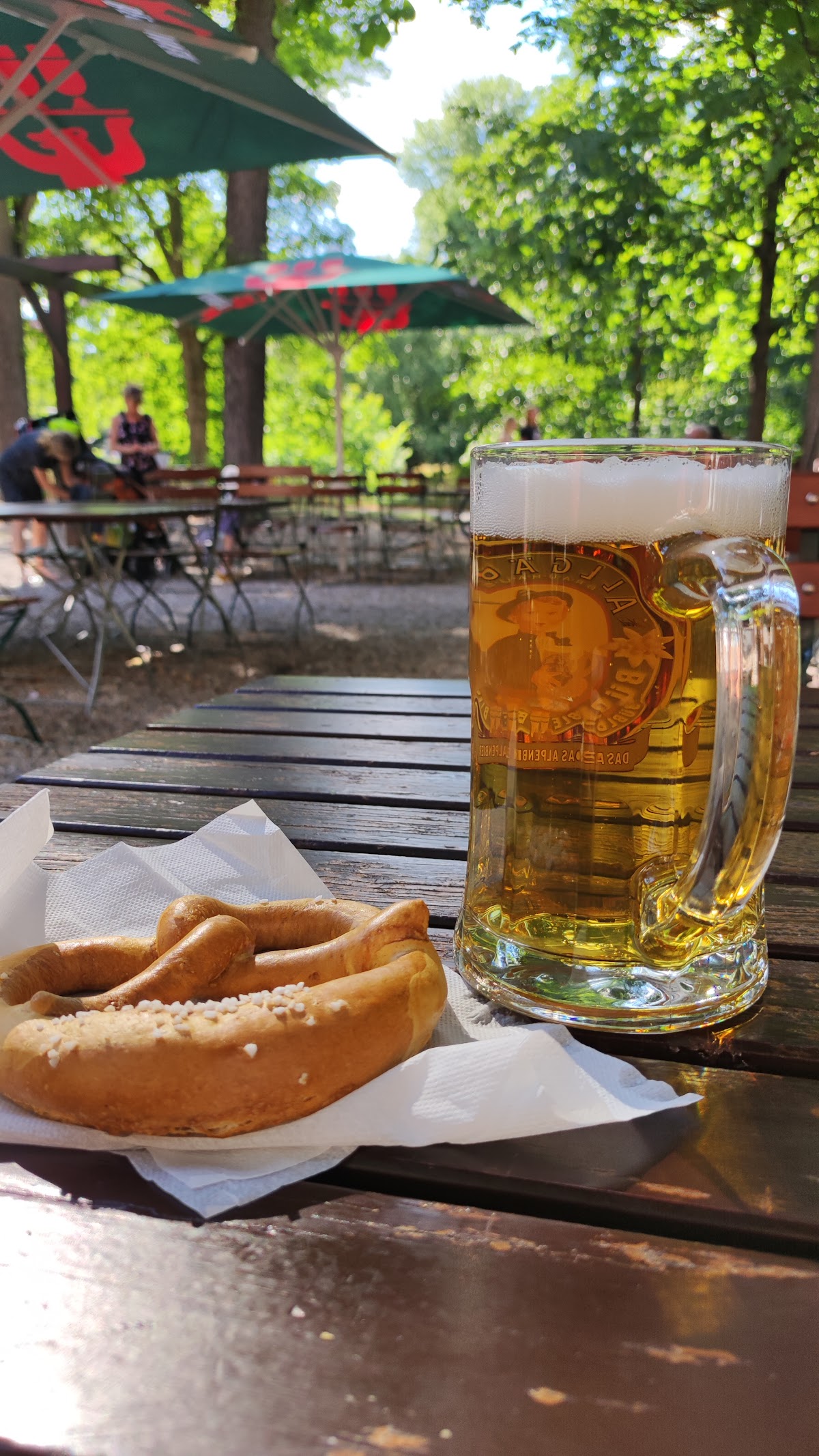 Ein gemütlicher Biergarten mit Selbstbedienung, sehr nette Menschen, die dort verkaufen und es gibt das, was man in einem Biergarten erwartet, einige Speisen, Bier und andere alkoholische Getränke. Wir haben den Biergarten durch Zufall gefunden, weil das Strandbad am Weißen See bereits um 19 Uhr schließt (unglaublich) und wir den lauen Sommerabend mit einem Bier genießen wollten. In Luises Biergarten ist uns das gelungen ????