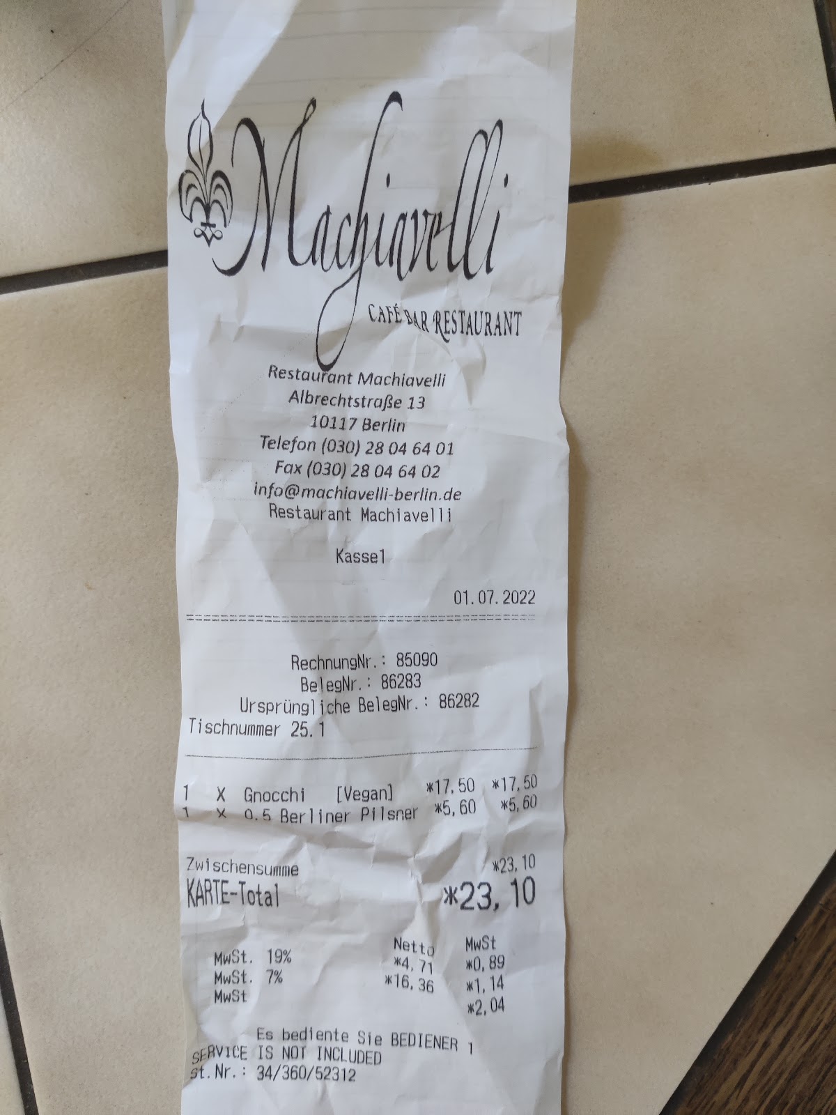The waitress was extremely kind, the place is super nice. The prices a bit high but in the average for the area which is super nice. The plates had very little of Italian, I went there because some German friends booked and as Italian I've to admit that the plates are very different from what we eat in Italy: the lasagna has nothing to do with our lasagna, risotto with chicken is more indian than Italian cousin, gnocchi refill with pesto is not our traditional gnocchi with mozzarella, parmigiano etc, and the pizza was more German pizza than Italian pizza. Said so, the area around is super nice and the service is kind, it's a good place for foreigners, a bit less for Italians.