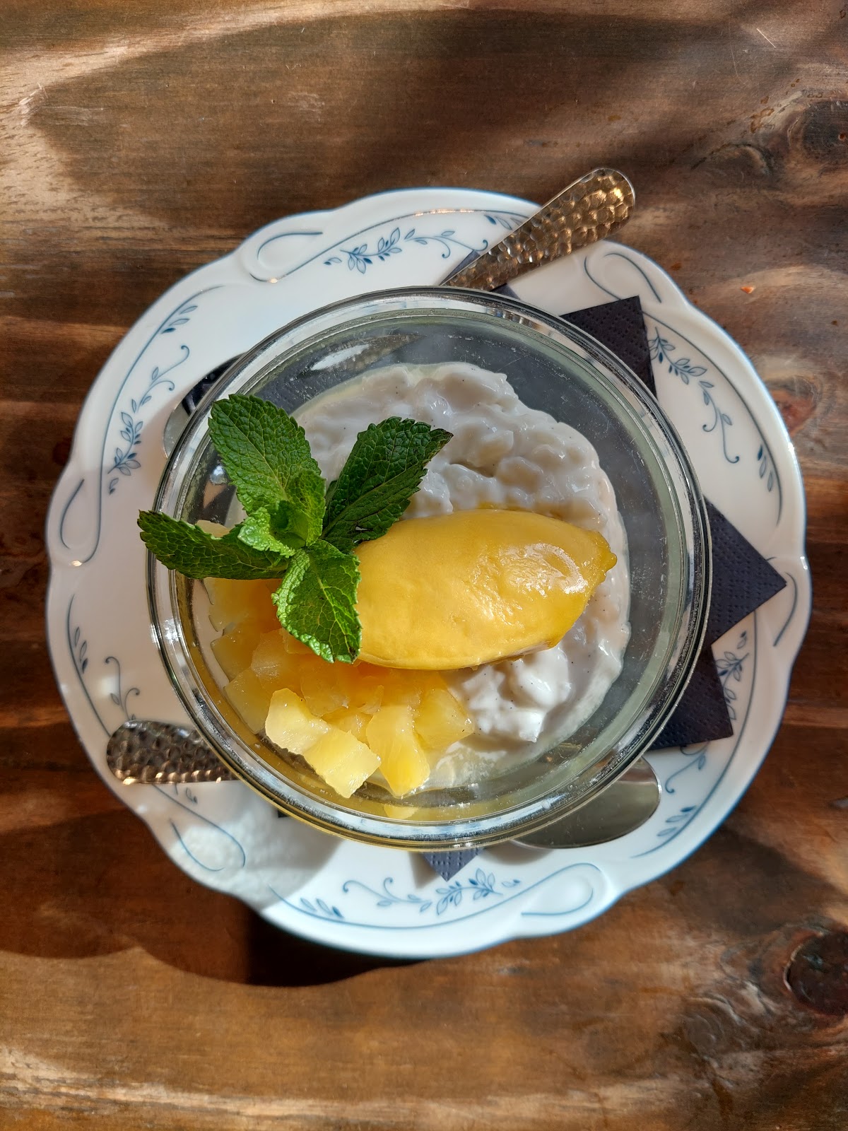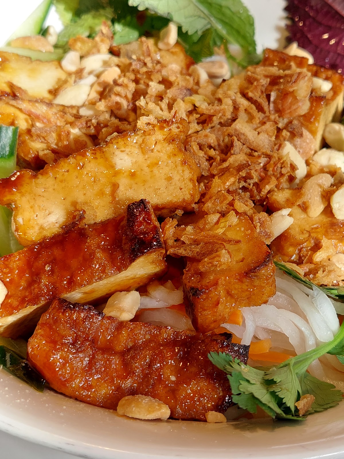 The food was really good , I had the vegetarian marinated tofu. Sauce was on point and the dish excellent for a hot day! The portion was pretty big but totally manageable to eat up since the taste was delicious! The coconut milk rice dessert was delicious too, totally recommend to get that.