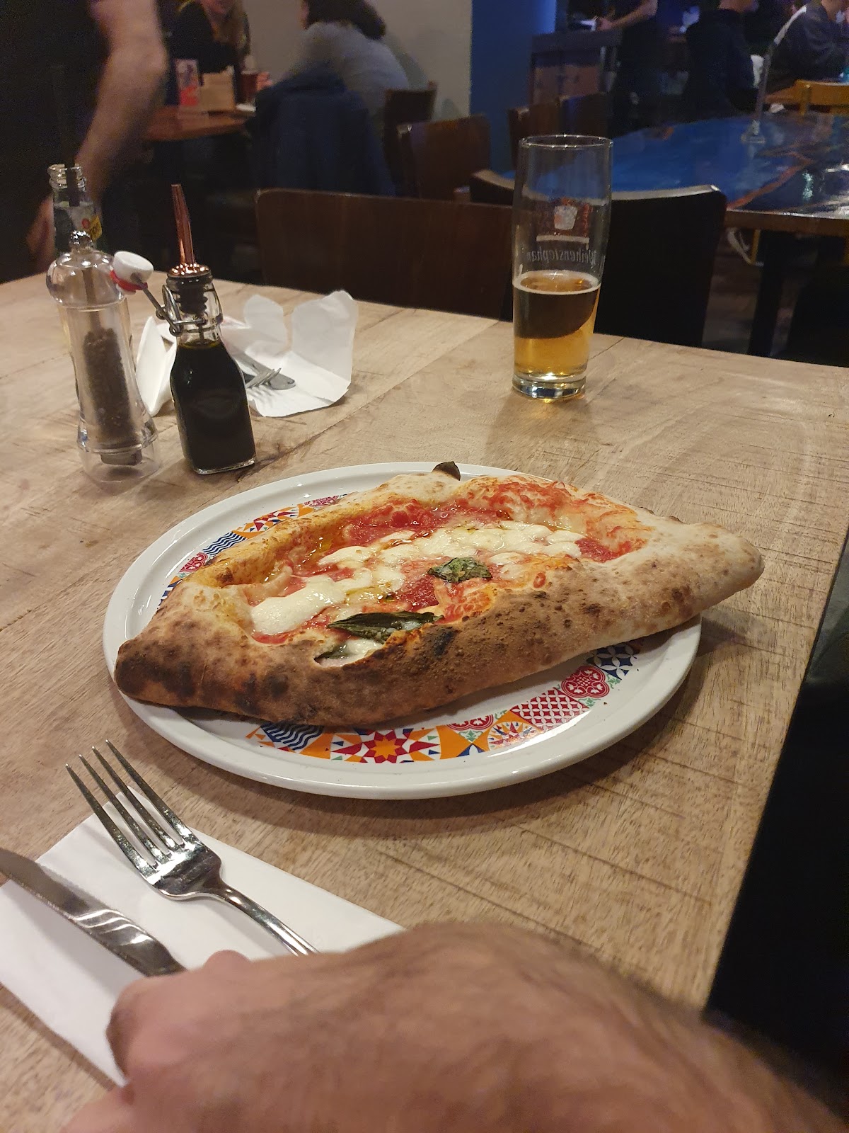 Quite famous place in Berlin, I can understand why. Very good cuisine, not only the pizzas and calzones but also the calamari and beef.