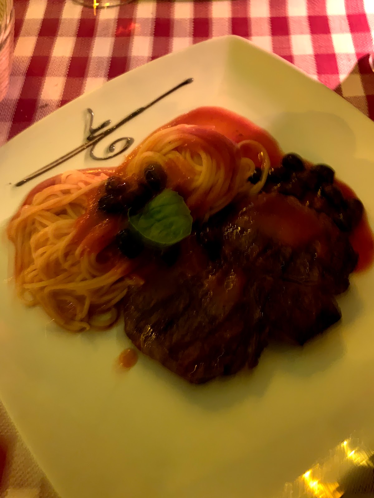 My personal favourite When it comes to meat is their entrecote that is served with pasta. The meat is perfectly grilled and juicy, and combined with pasta, its a pleasure both for the eyes and the tastebuds. Try it!