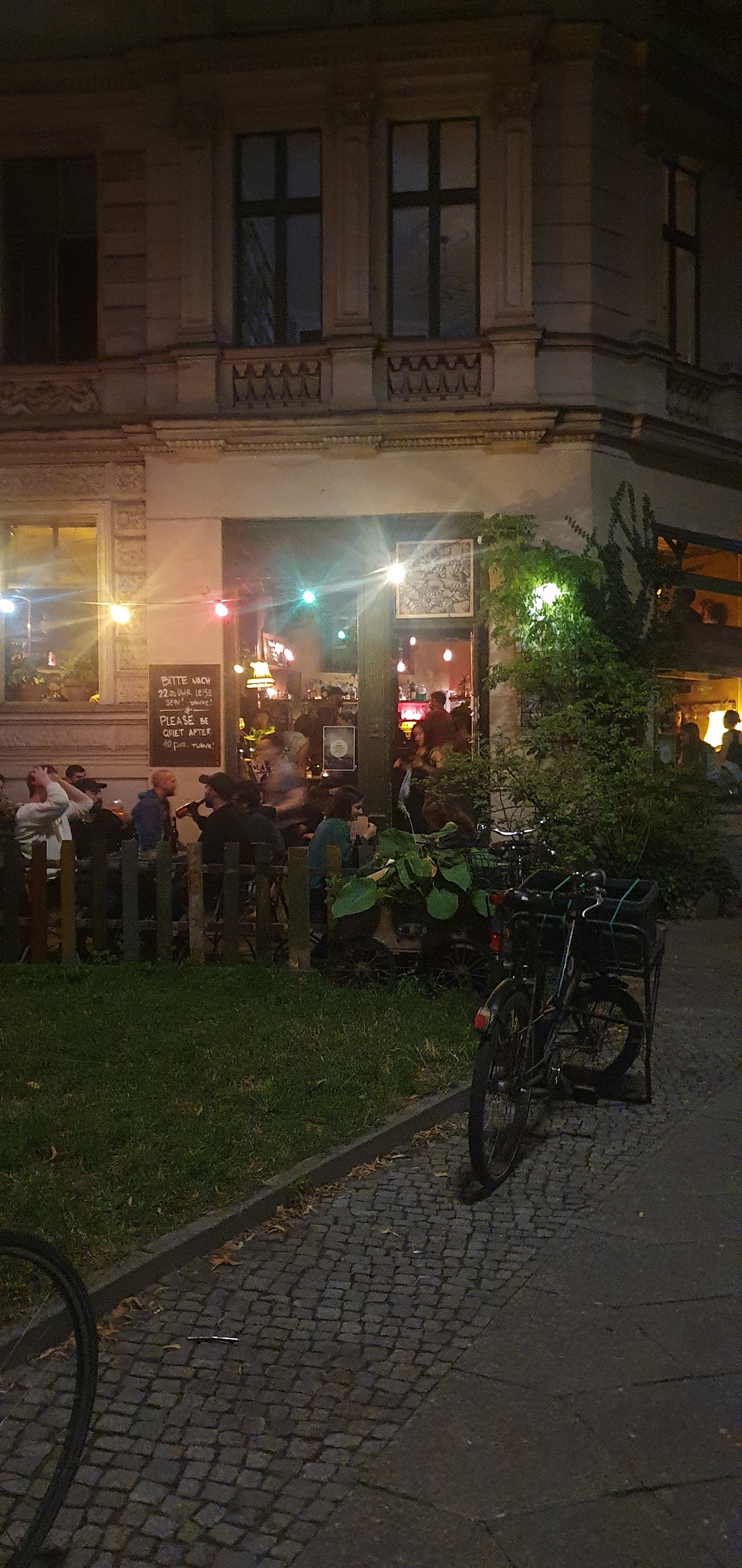 Nice place to drink wine and giggle with your friend in the last gasp of warm days in Berlin. Plenty of seating and as I understand it, during the winter you can sit on the floor in the smoking room.