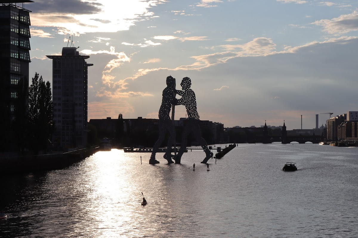 Great view of an intriguing sculpture, but an odd location - just a bit of derelict land by the river. Interesting walk from there back to more central parts, through some interesting East Berlin areas. Sculpture is lovely in the evening light, and very "accessible". All in a great historical and modern city.