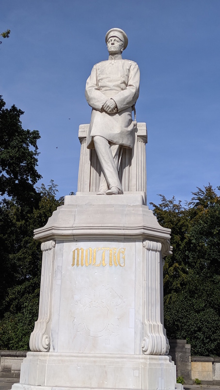This monument stands in tribute to Helmuth Karl Bernhard Graf von Moltke, or more often simply Moltke the Elder. Moltke was a fine military strategist who is considered to have masterminded Prussian victories over Austria and France in the latter part of the 19th century.