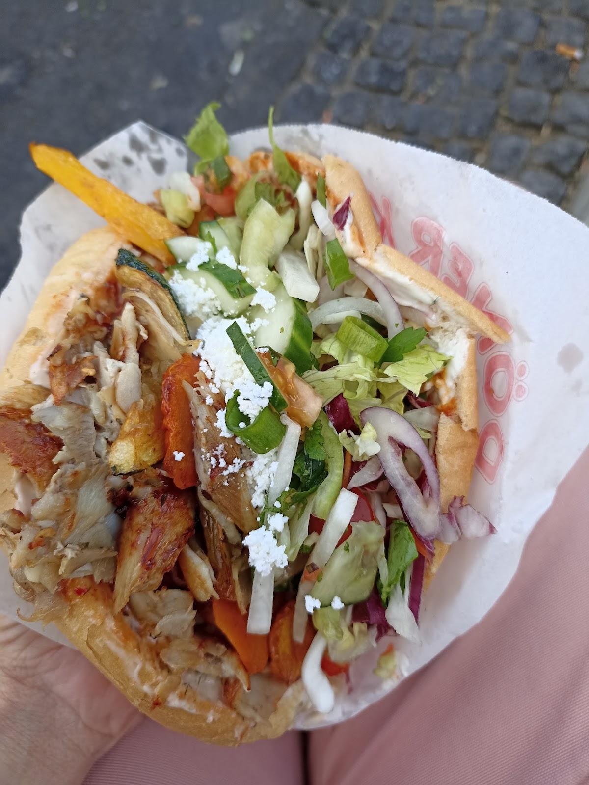 Worth to wait ! Amazing vegetarian kebab with tasty fresh and grilled vegetables. We came around 12pm on Monday (it was holiday in Berlin ) and were waiting around 50 minutes. When we ordered kebabs, Quique was much longer so it’s good to come earlier !