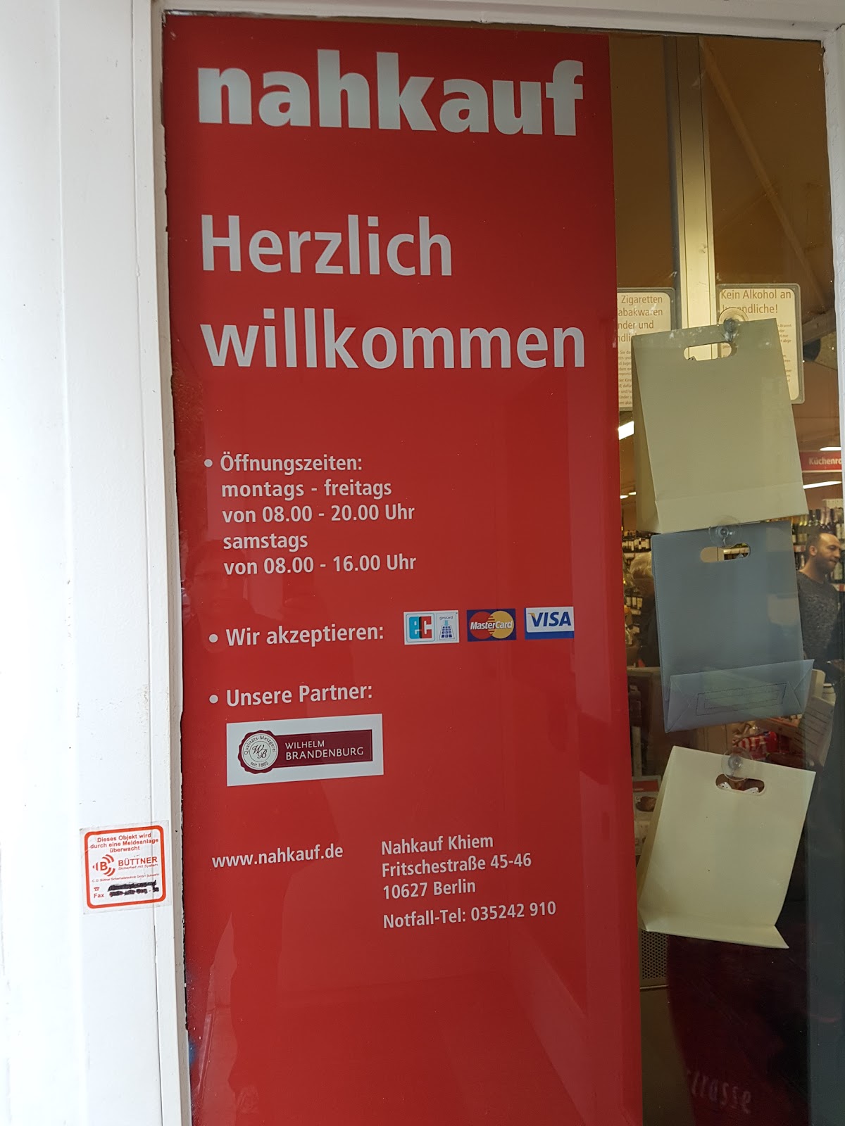 This is a very friendly supermarket, it's located at the corner of Bülowstraße. The store itself isn't really big, but it offers many things you might need, breads, meats, drinks and many frozen food, really convenient for people who just need something quick.