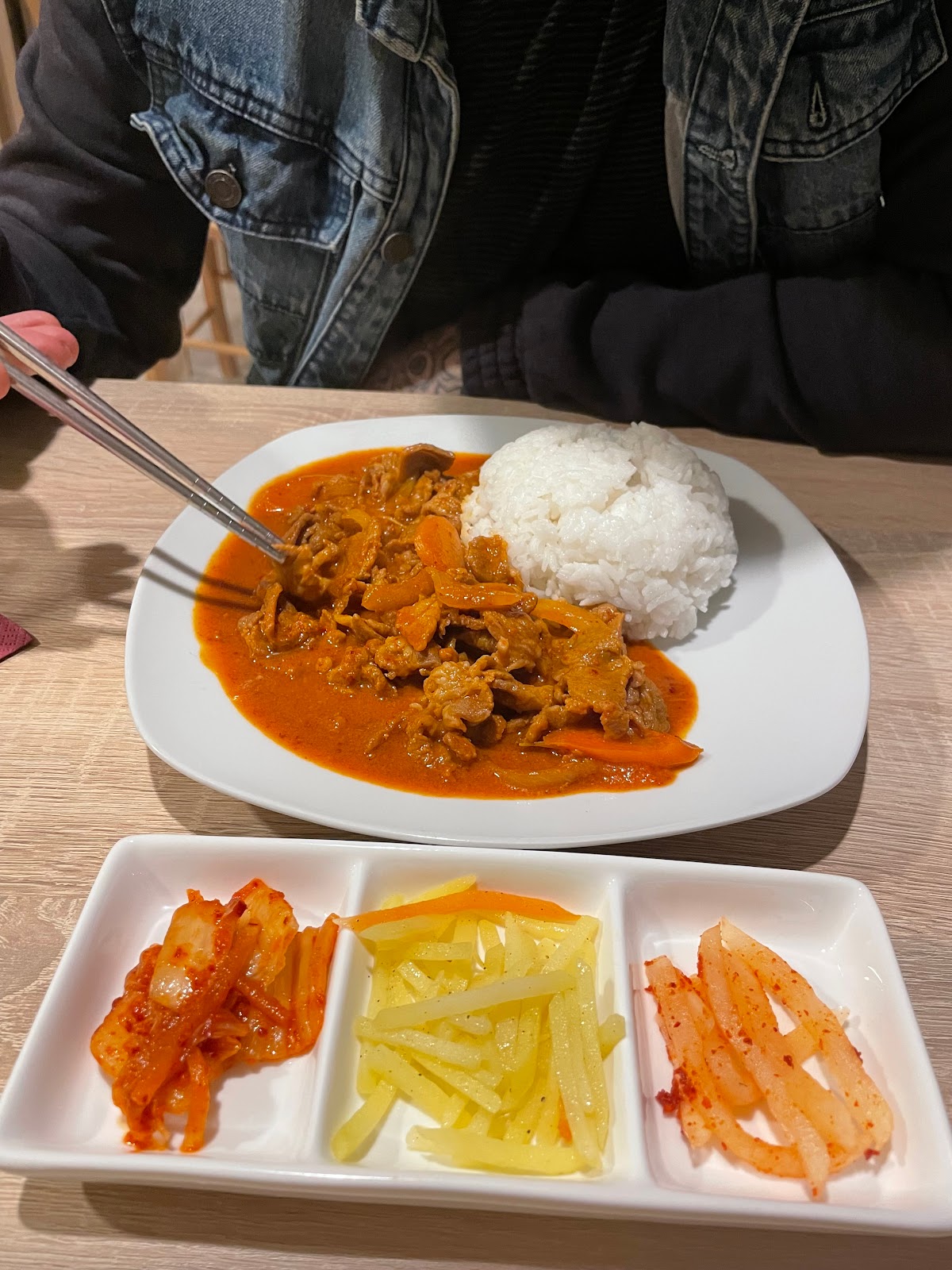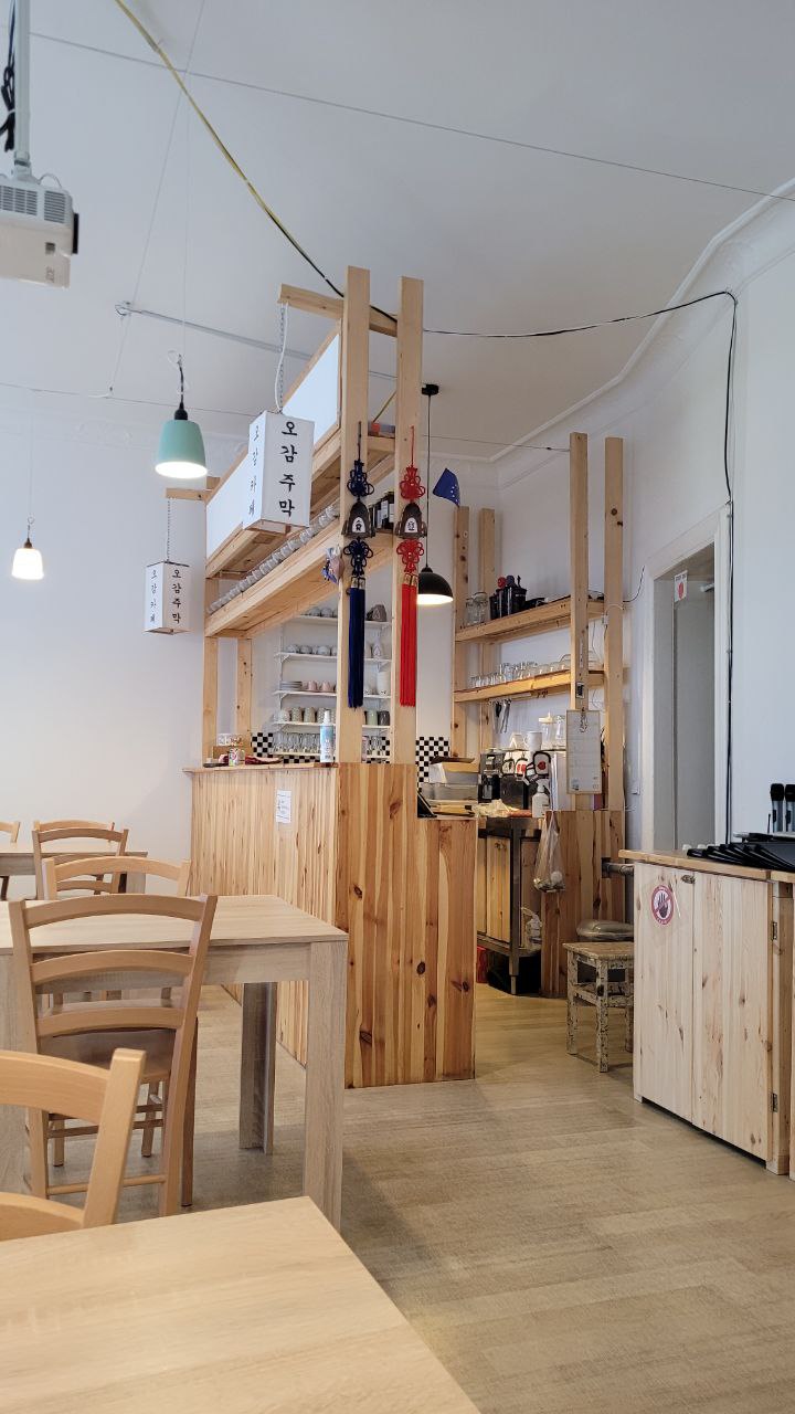 Very modest furnishings, no kitsch pictures from Seoul, no Asian gadgets: only Korean excellent food!