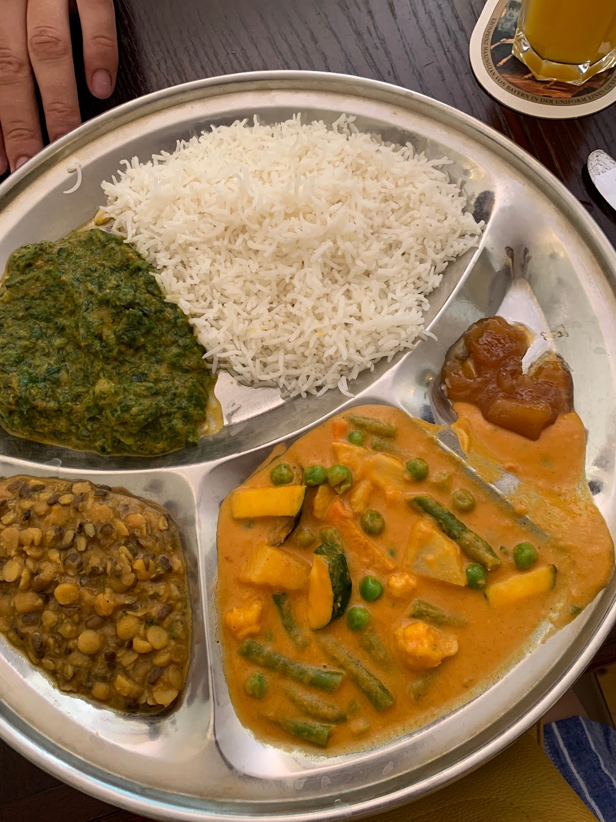 balanced taste of the indian food! Particularly enjoyed the Veg Thali! The hospitality was so good that our server also offered us Chai tea and desert for free at the end of our meal!!